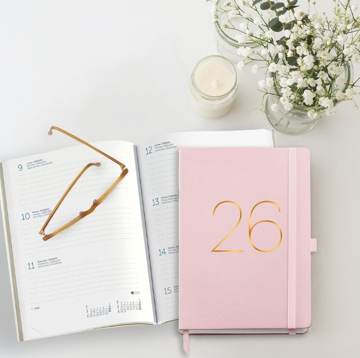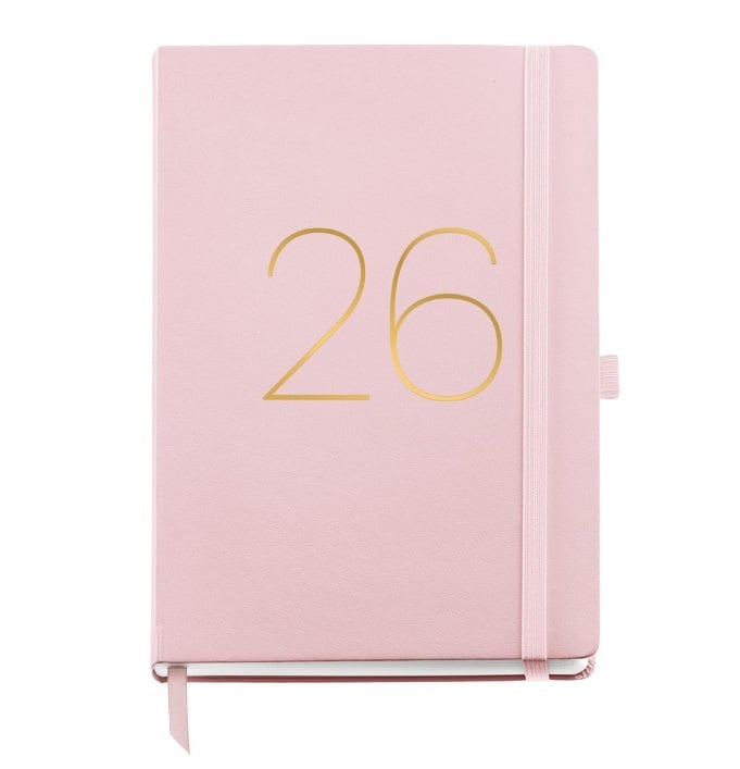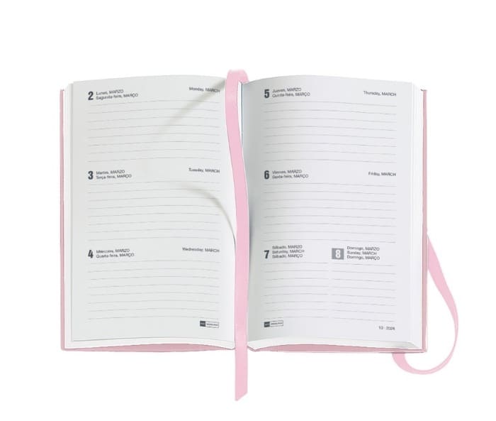 Elegante, práctica y con un diseño exquisito, esta agenda 2026 es perfecta para quienes buscan organización y estilo en su día a día. Su cubierta rígida cosida en símil piel rosa pastel (papel vinílico) aporta un tacto suave y una imagen sofisticada, ideal tanto para uso personal como profesional.