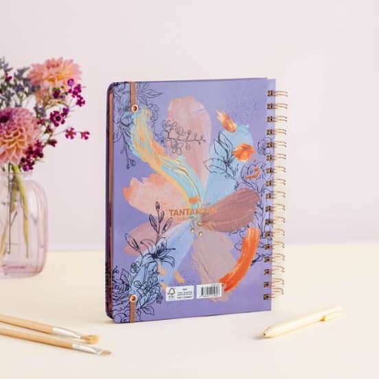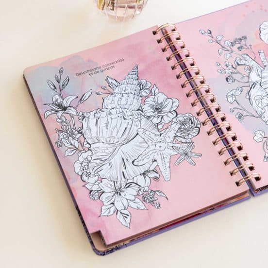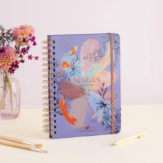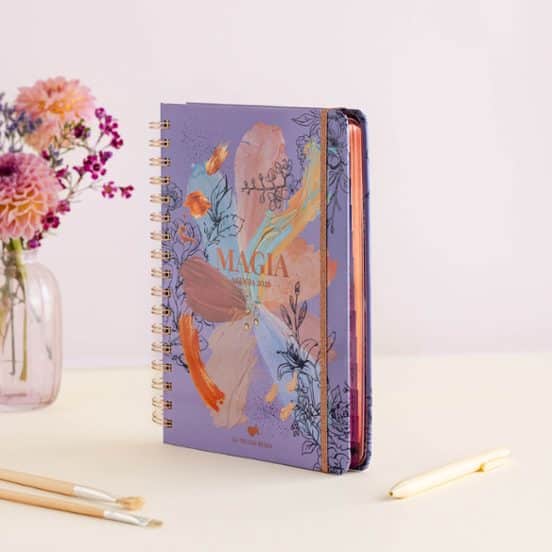 Su diseño delicado y elegante, decorado con motivos florales pintados en estilo acuarela en tonos empolvados y trazos suaves, transmite serenidad y buenas vibraciones. Y su artística portada da ganas de estrenarla en cuanto la tienes entre manos. Su cuidado estilo se completa con las esperadas páginas de pósits y pegatinas, calendario menstrual y páginas para colorear tu año y tomar tu temperatura emocional.