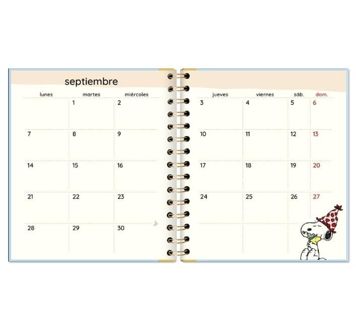 Organiza tu año con ternura y estilo con esta encantadora agenda de Snoopy y sus amigos. Su diseño alegre y funcional te acompañará en tu día a día, ayudándote a mantener todo bajo control sin perder el toque divertido.