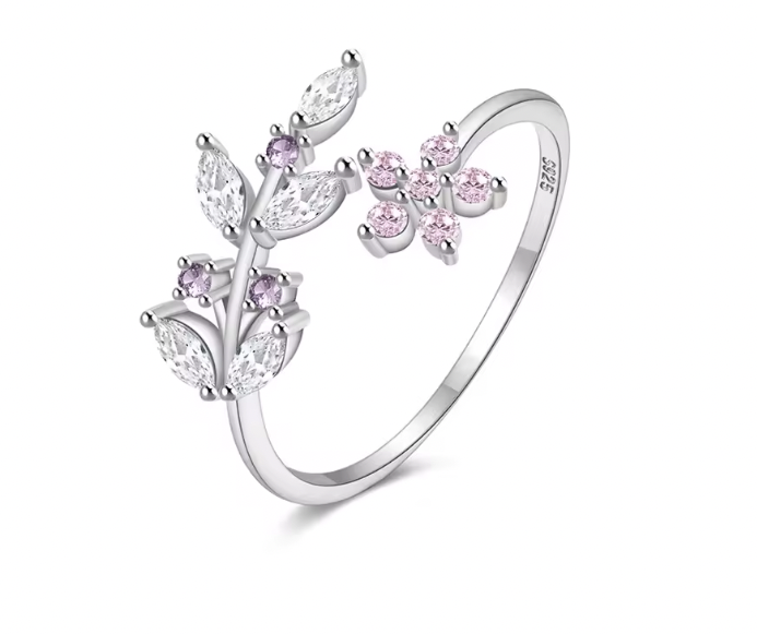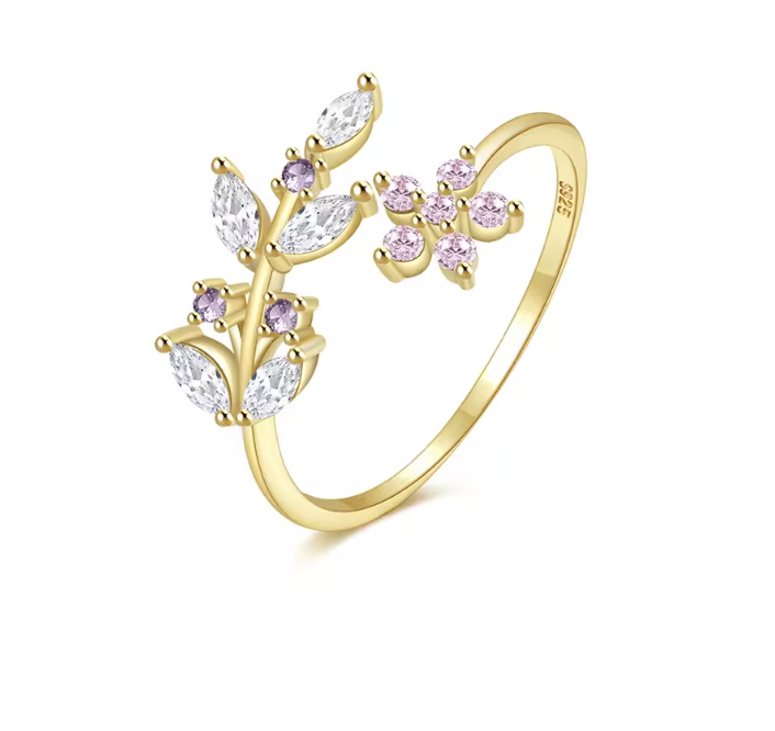Dale un toque elegante a tu mano con este precioso anillo de plata en plateado y en dorado, ajustable por delante.