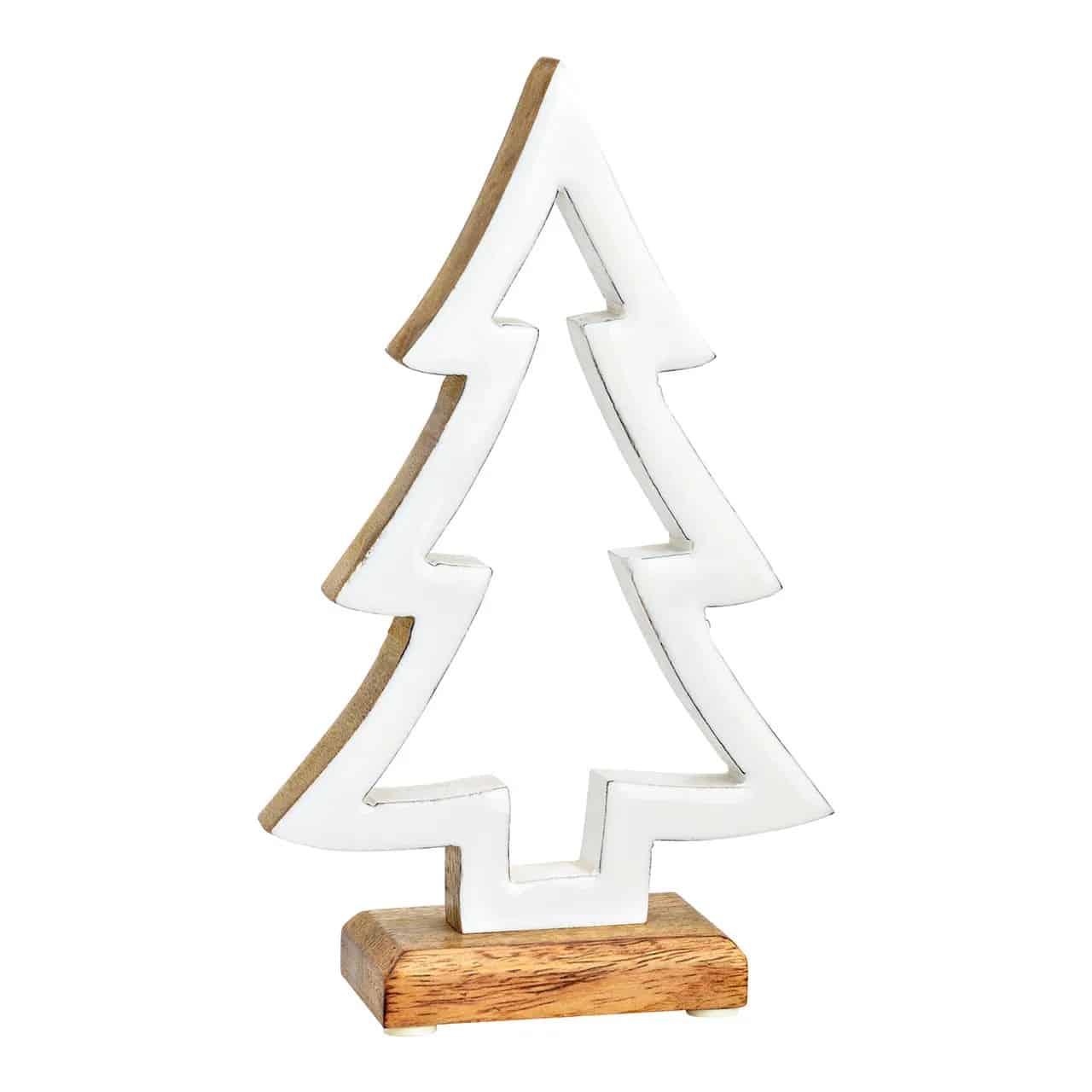Este precioso árbol decorativo es el complemento perfecto para dar un toque moderno y elegante a tu decoración navideña. Presenta un diseño limpio y minimalista en madera, con un acabado en pintura lacada blanca que resalta su silueta y aporta luminosidad a cualquier espacio.