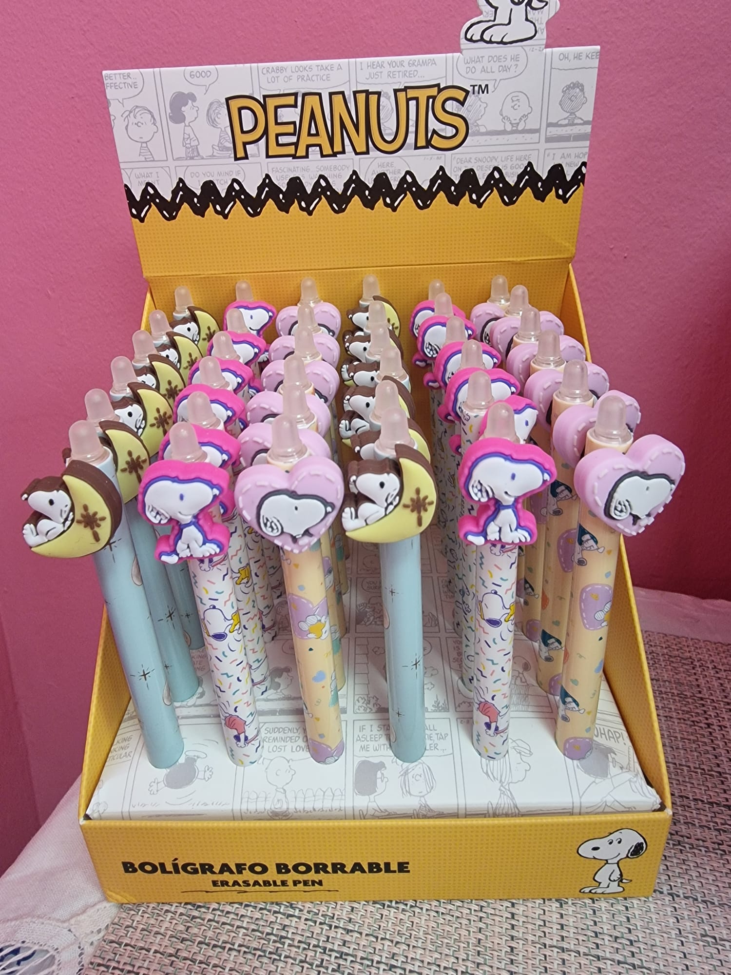 SNOOPY: Bolígrafo retractil y borrable con tinta de color azul, perfecto para cualquier culé. Hay diferentes modelos. Se venden por separado. Se surtiran según existencias.
