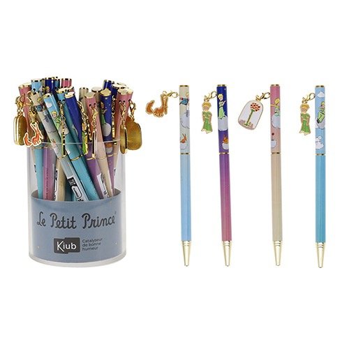 Todo fan de El Principito necesita tener este bolígrafo en su escritorio. Hermosos bolígrafos con estampado de escenas del famoso libro, hechos de metal y decorados con un lindo charm decorativo, que después utilizar en tu pulsera, llaves o bolso.