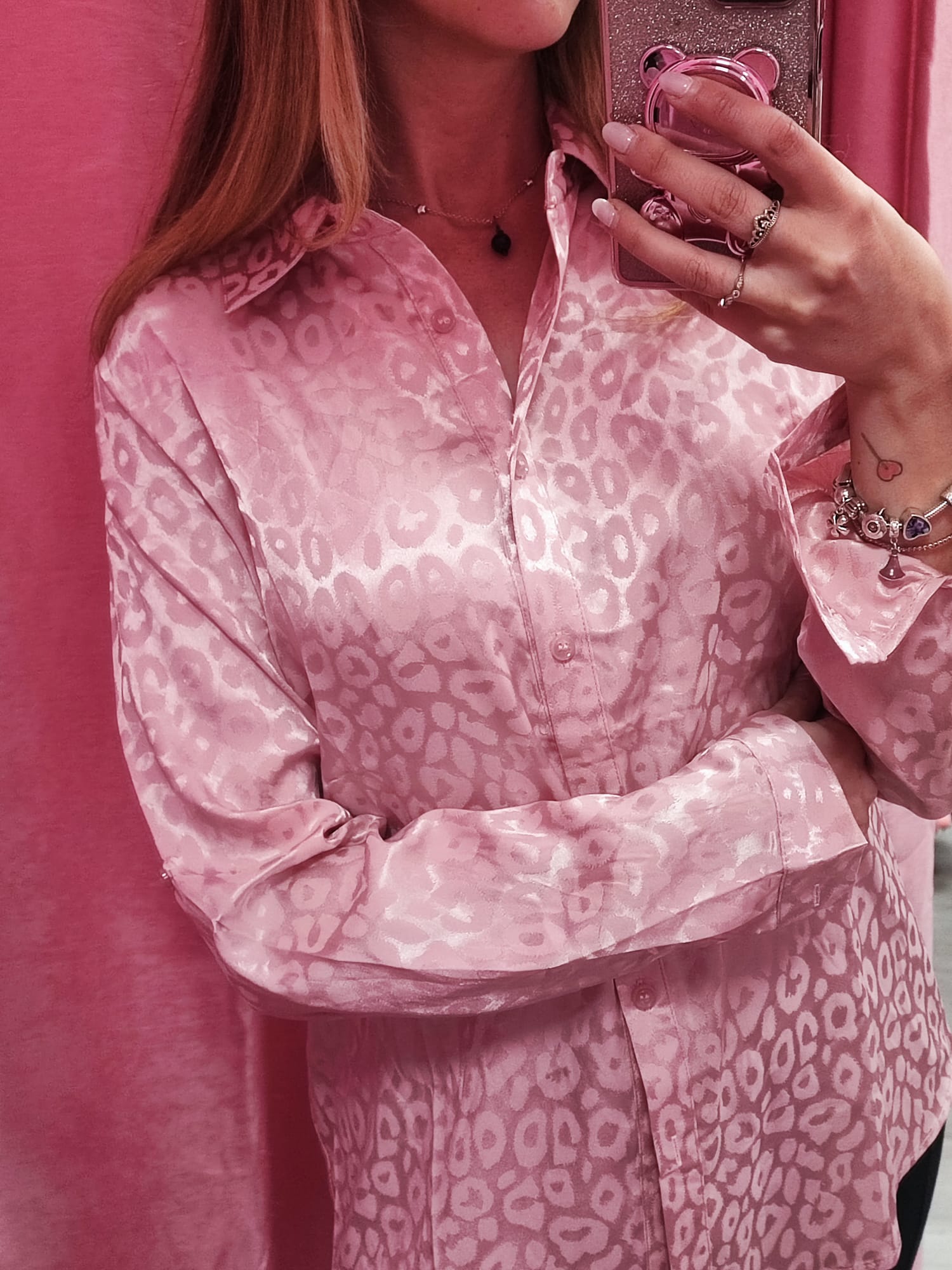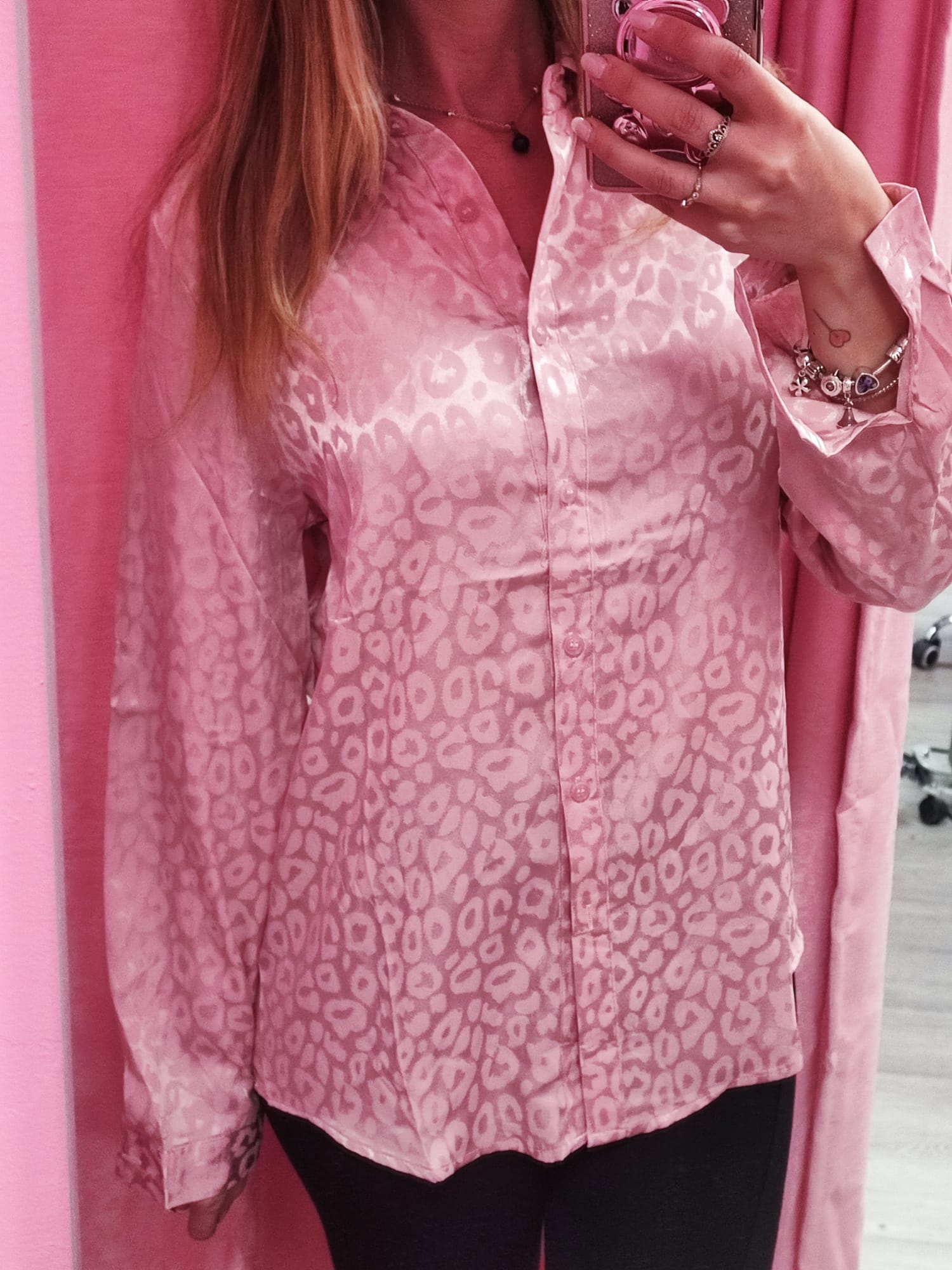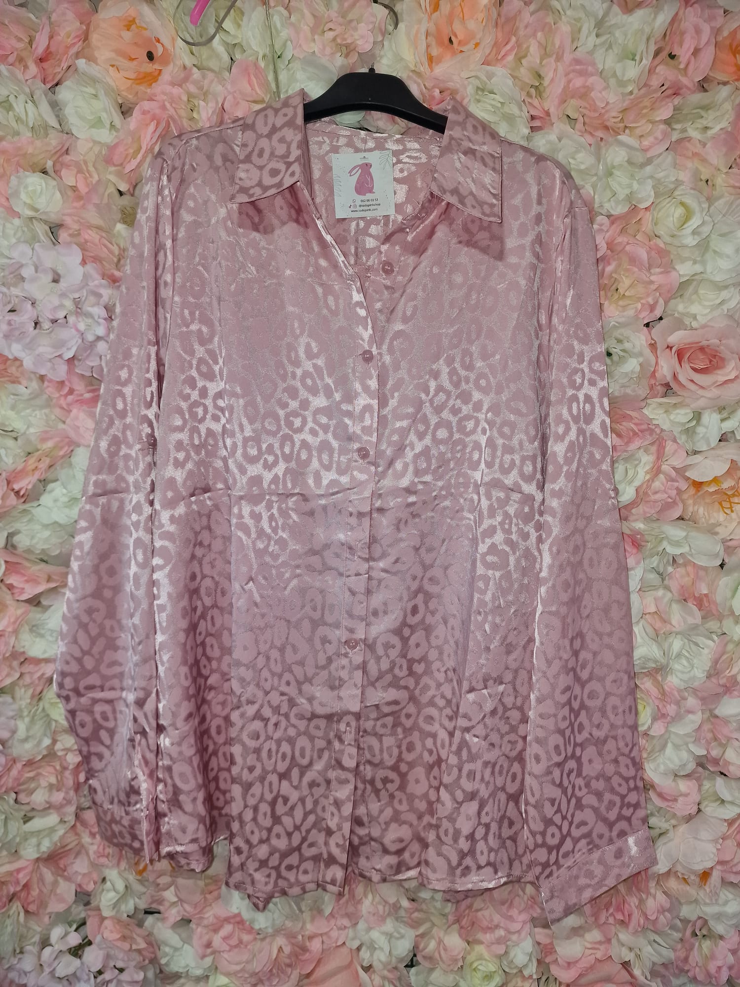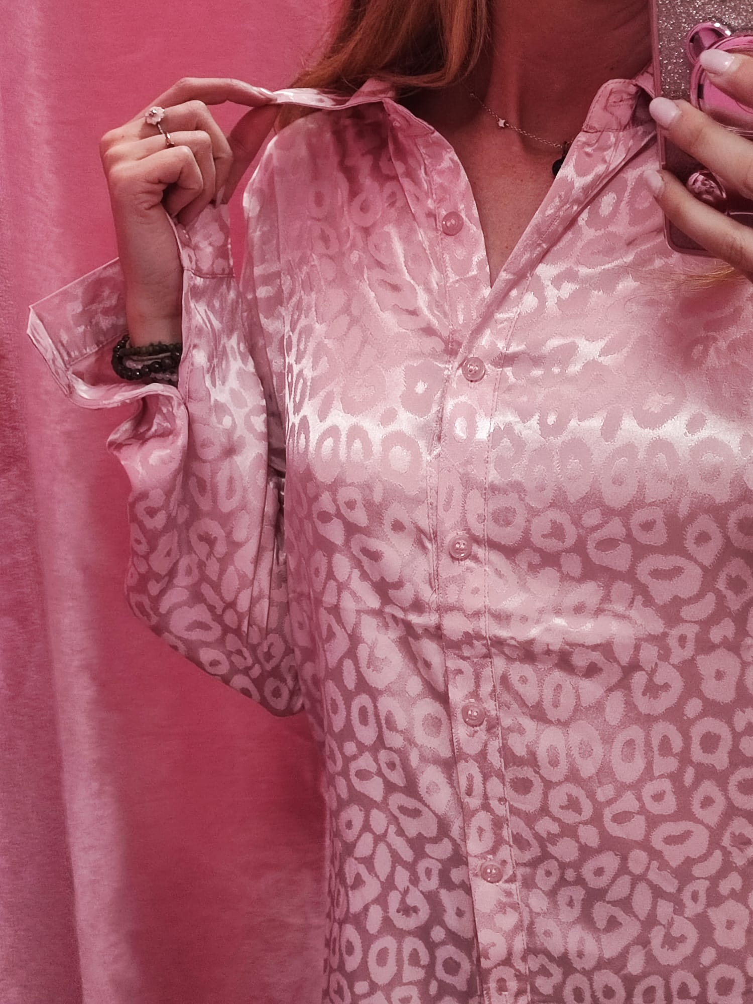 Hermosa camisa con estampado de animal print en tono rosa. Únete a la moda de esta temporada con ésta súper camisa.