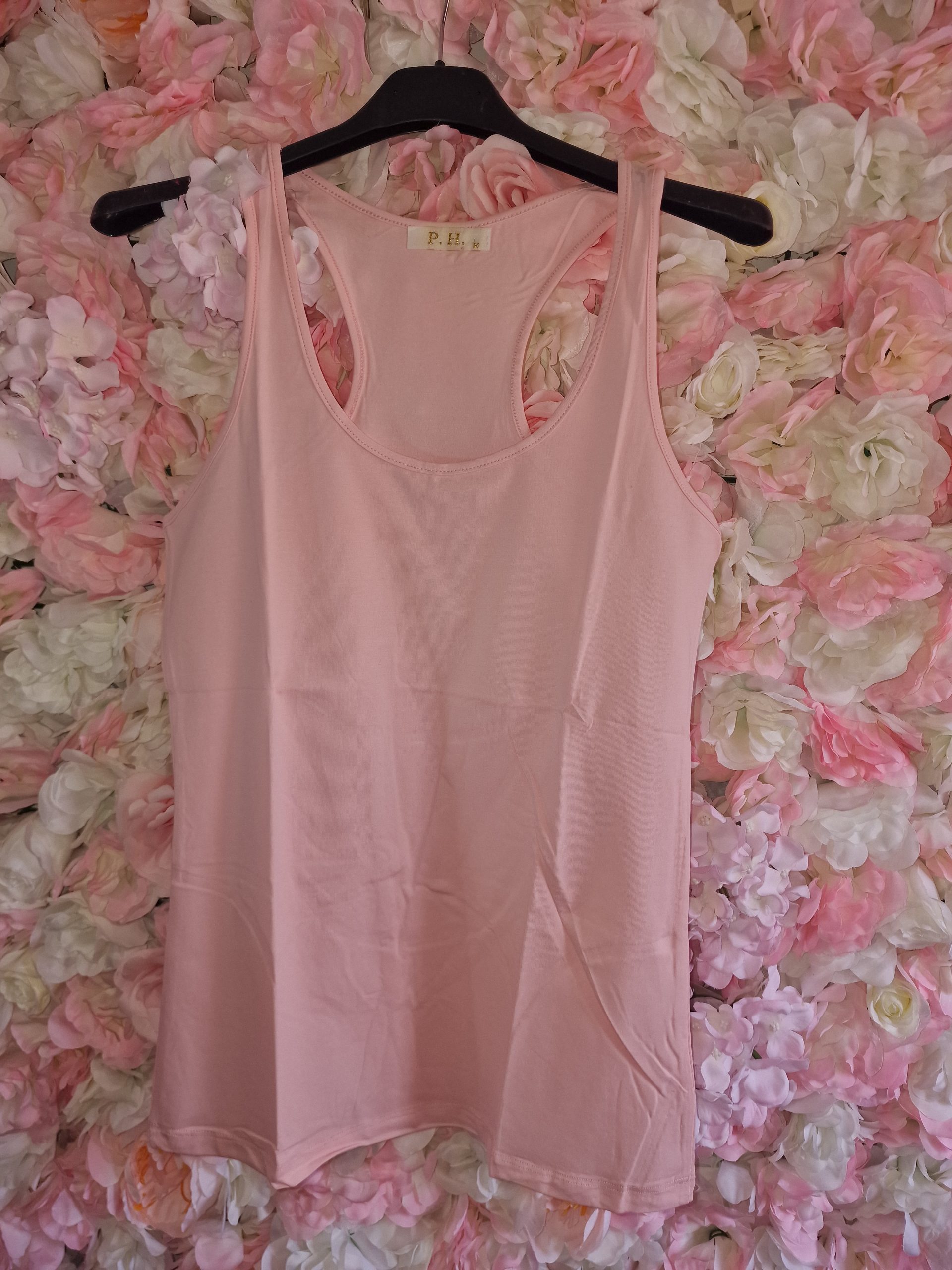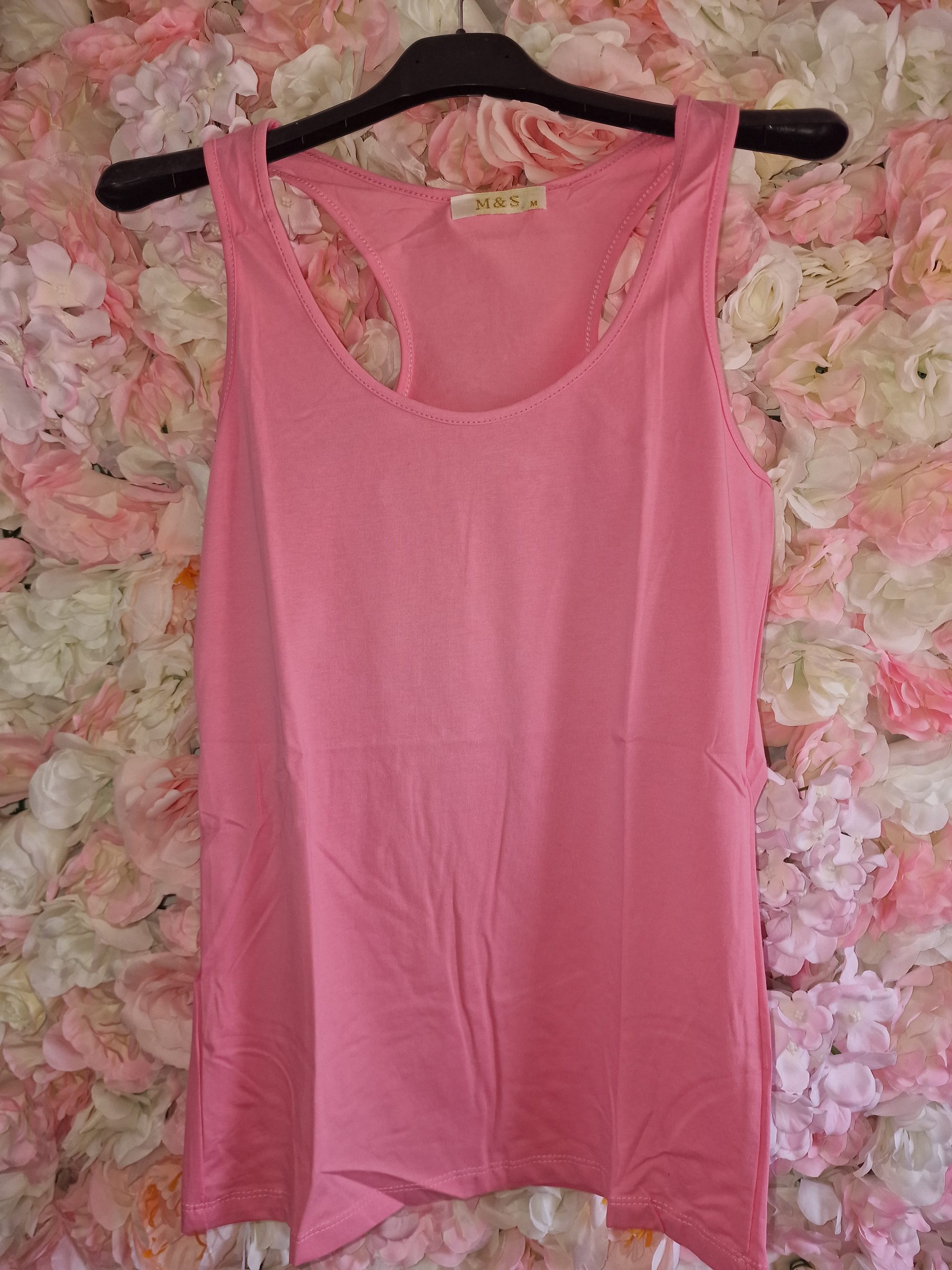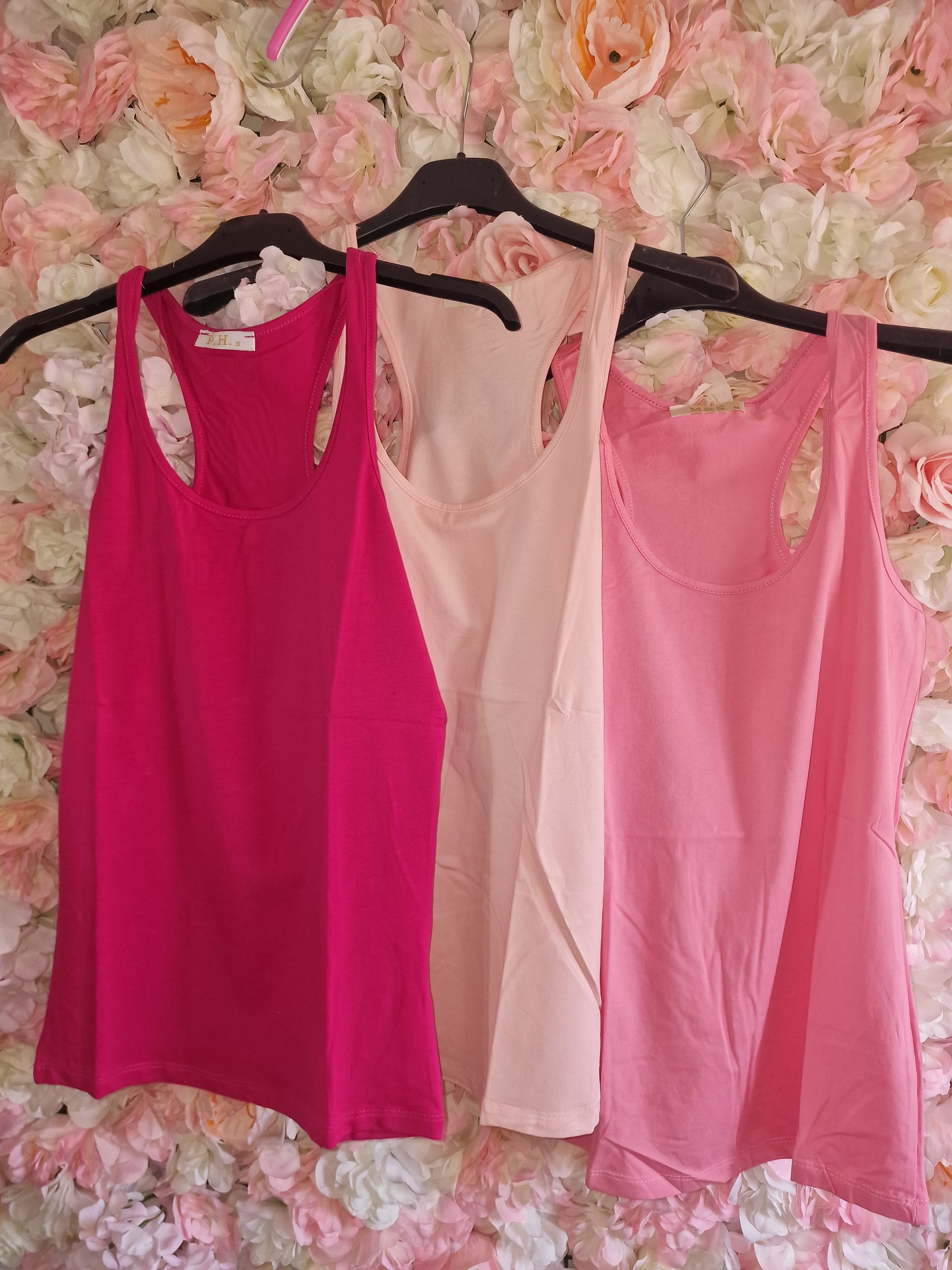 Camiseta de tirantes en tres tonalidades de rosa, muy cómoda y elástica, perfecta para llevar debajo de otras prendas o como prenda única. ¡Te encantará!