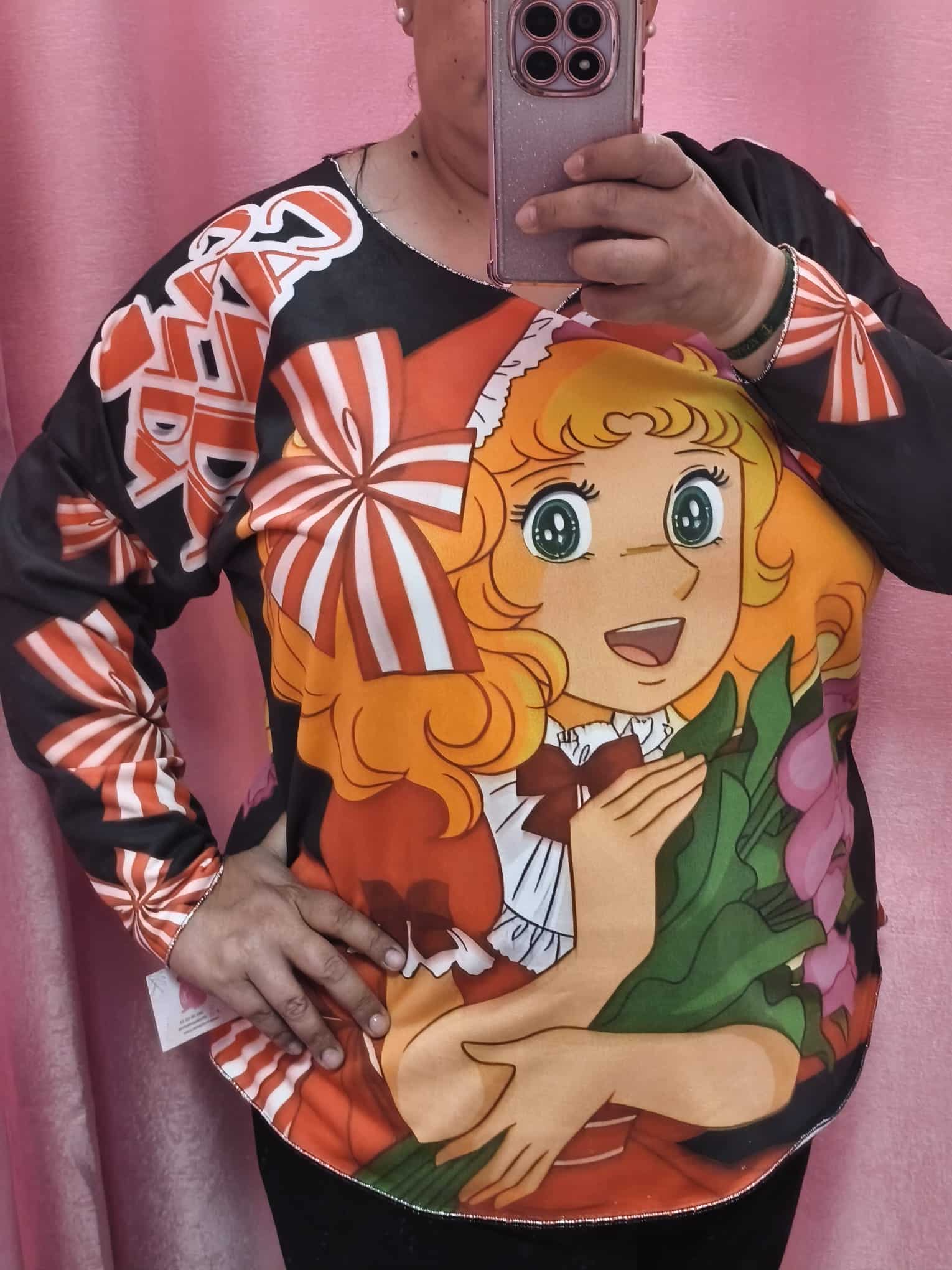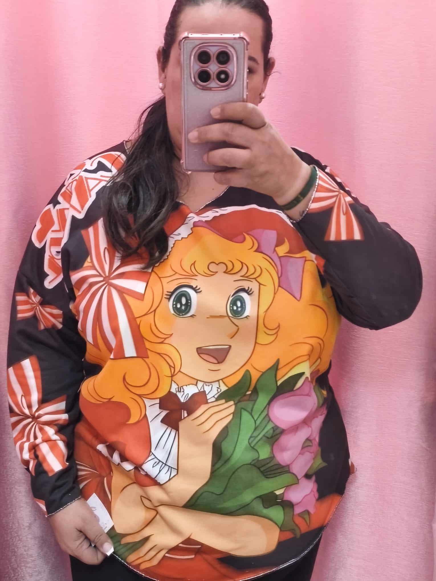 ¡Dulce, colorida y con todo el encanto retro que nos encanta! ? Esta camiseta curvy está inspirada en los clásicos del anime y tiene un diseño supervibrante que llena de alegría cualquier look.