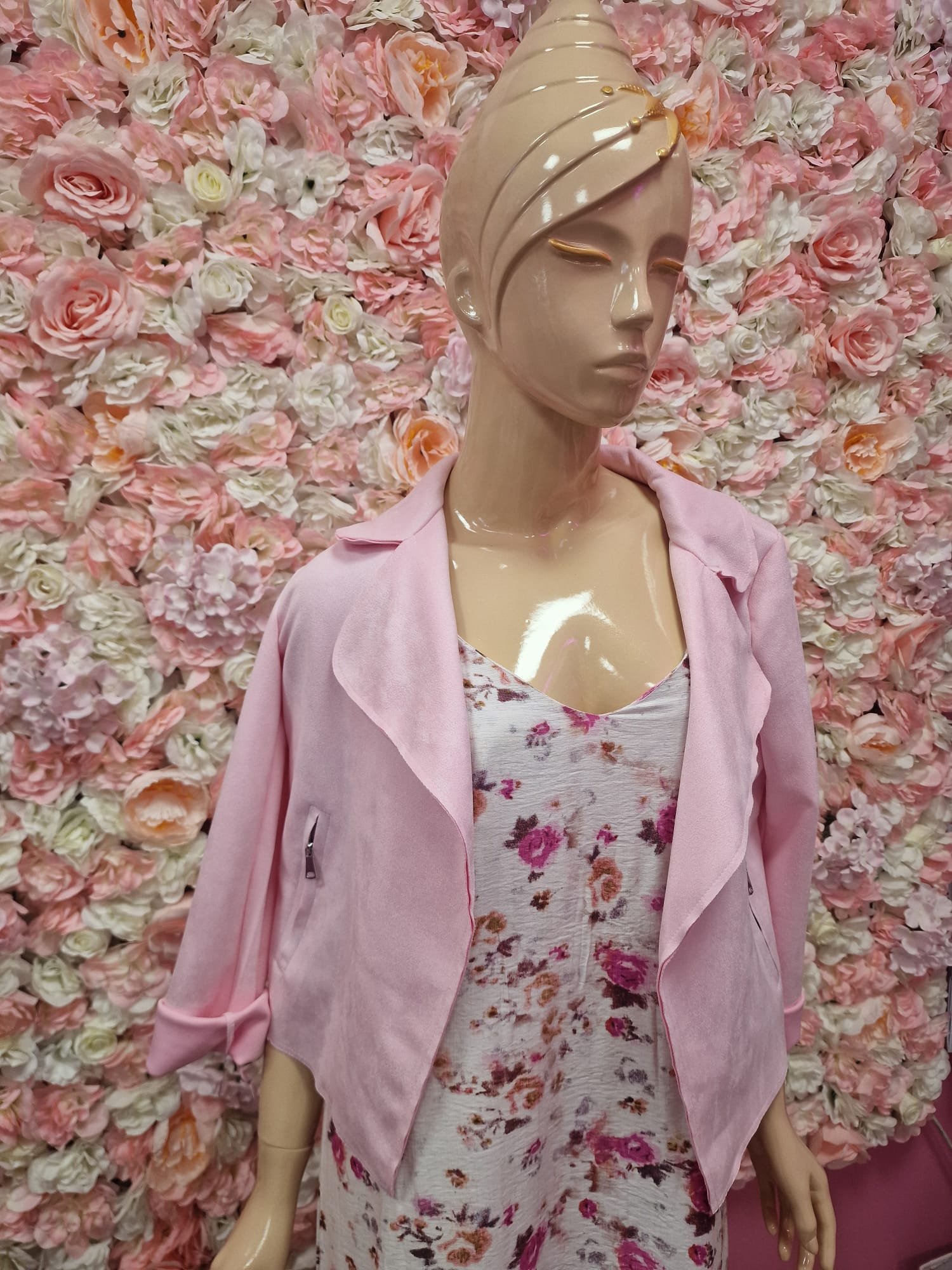 Versátil, ligera y con muchísimo estilo. Esta chaqueta rosa de corte asimétrico y textura suave es ideal para complementar cualquier outfit casual o semiformal. Su diseño fluido y sin botones aporta un toque relajado pero elegante, mientras que los cierres laterales añaden un detalle moderno y funcional. Perfecta para primavera, verano o días frescos.