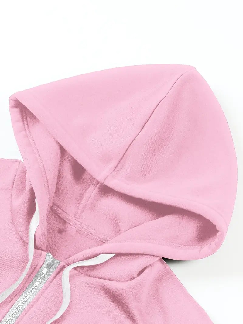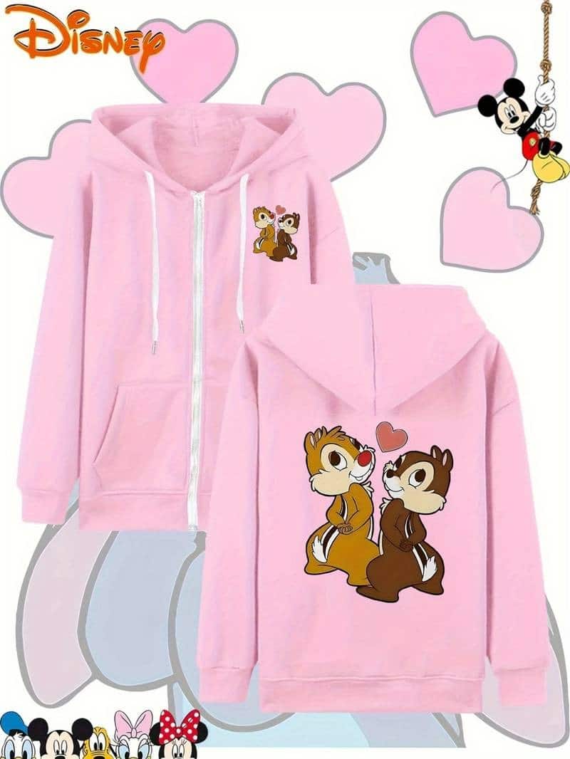 Esta preciosa chaqueta con cremallera es perfecta para fans de Disney. Confeccionada en un suave tejido rosa pastel, incluye capucha con cordón ajustable y bolsillos delanteros para mayor comodidad.