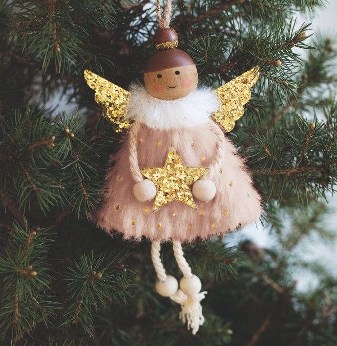 Dale un toque mágico a tu árbol con estos encantadores angelitos navideños. Fabricados en tela con detalles de purpurina dorada, cuelgan fácilmente gracias a su cordón y aportan un brillo especial a cualquier rincón.