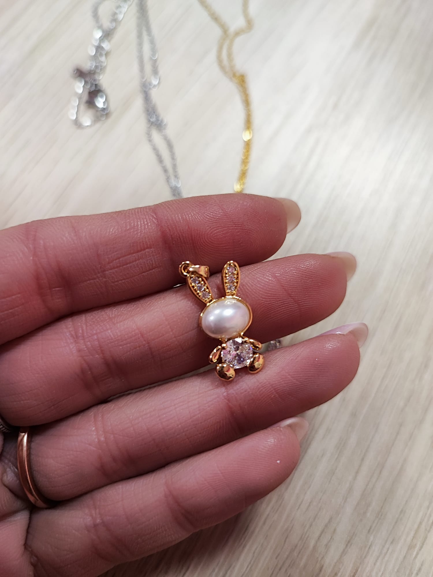 ✔ Colgante en forma de conejo con perla natural ovalada.