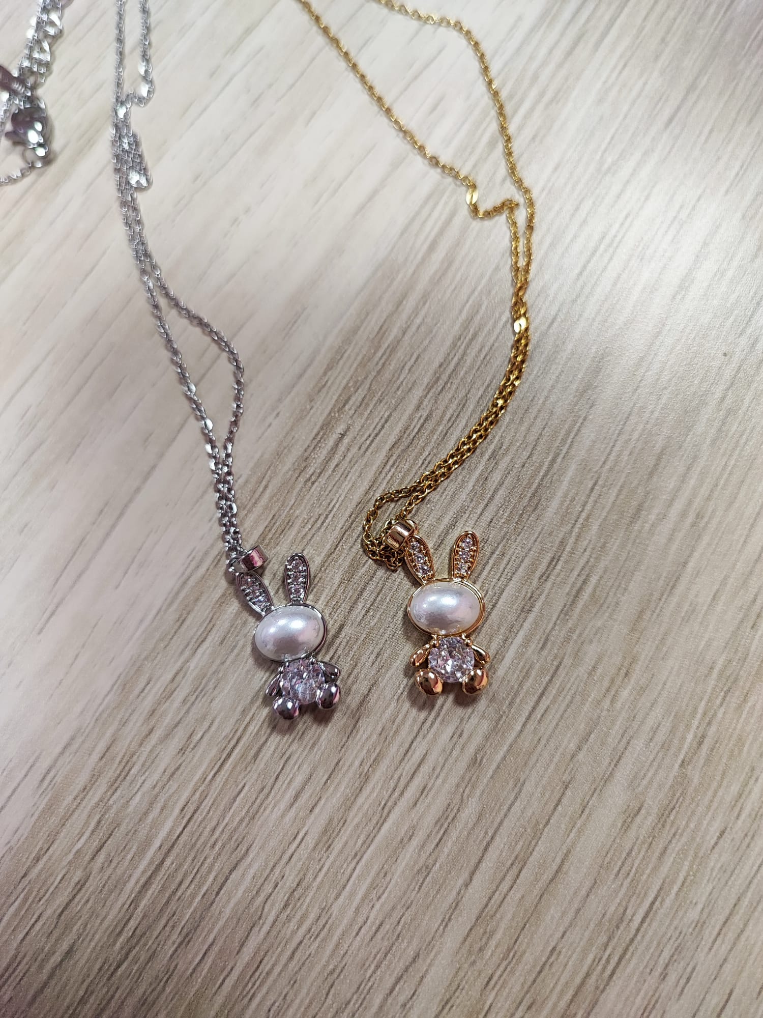 ✨ Hermosos collares de conejo con perla y brillantes ✨