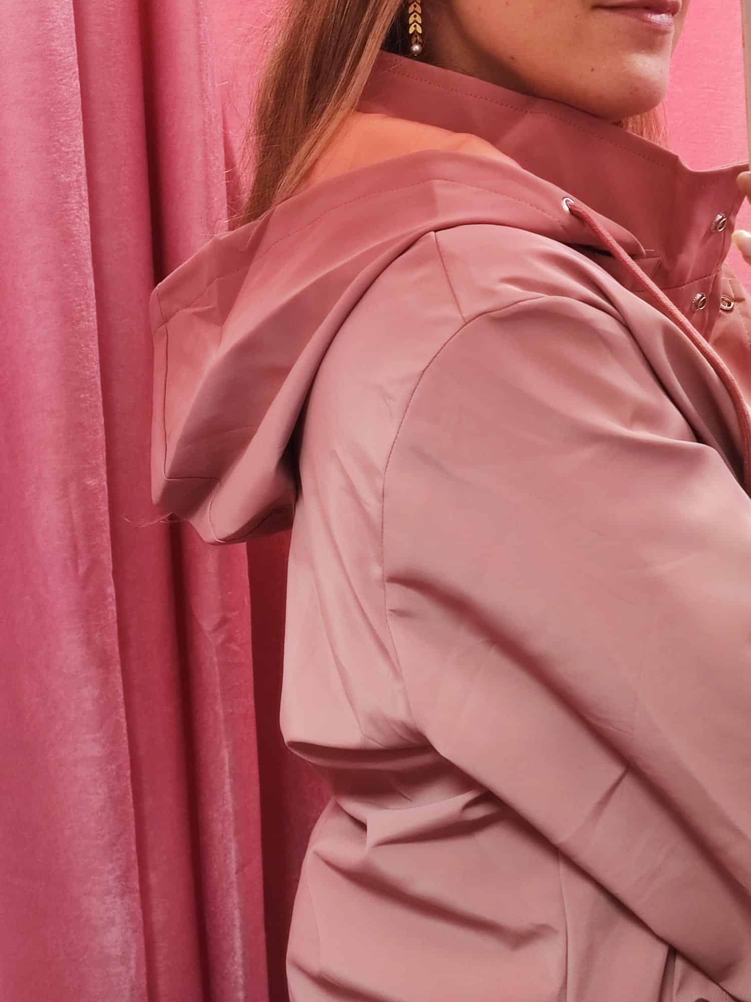 Este chubasquero combina estilo y funcionalidad a la perfección. Su tono rosa empolvado es ideal para dar un toque dulce y moderno a los días de lluvia ☔✨.