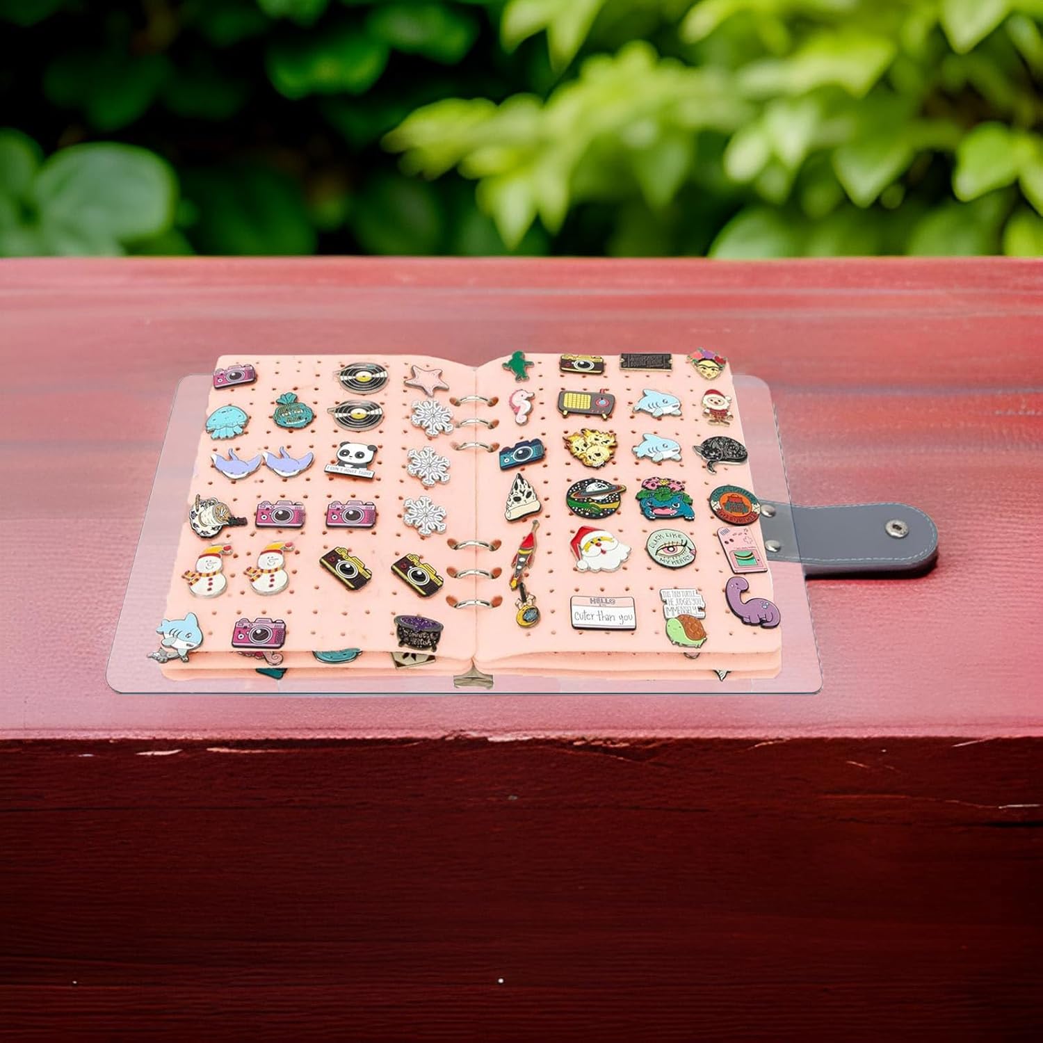 - Fabricado pensando en la comodidad, este expositor de pines viene con páginas forradas de fieltro resistentes que evitan arañazos y agujeros extraíbles para ojales para una organización personalizable, por lo que es un accesorio versátil para cualquier coleccionista.