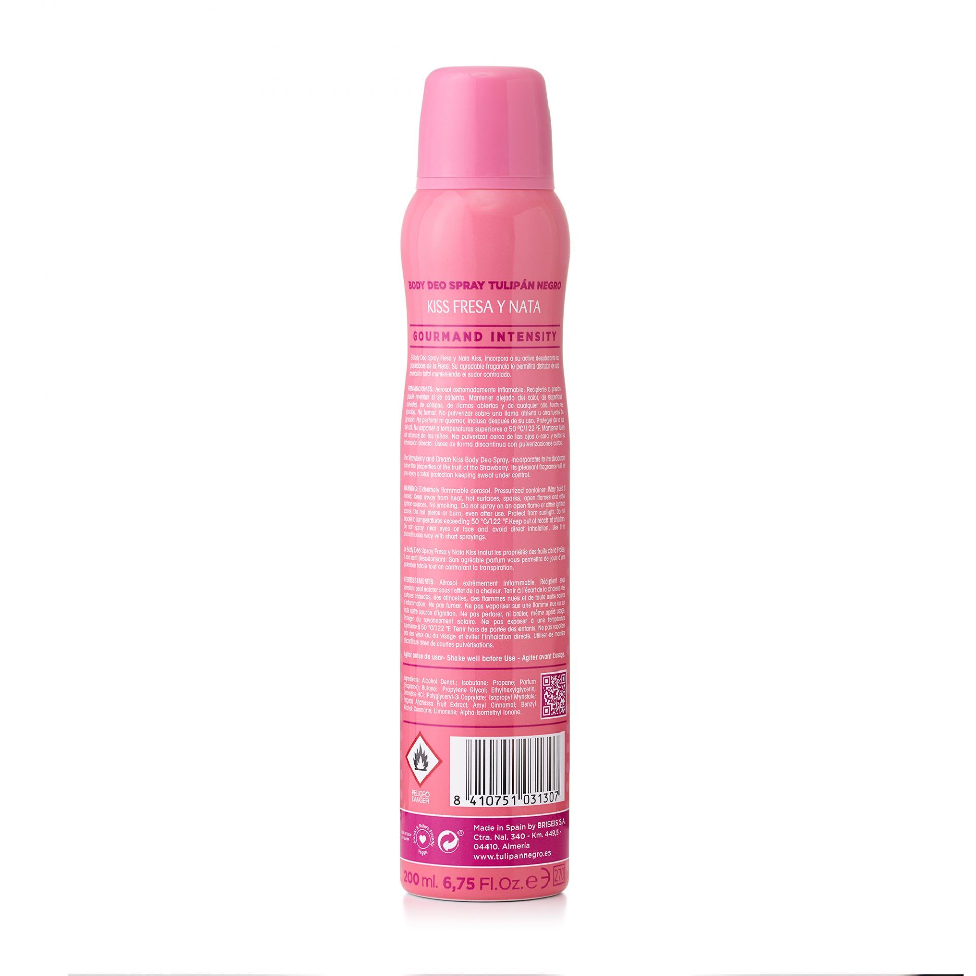 El Body Deo Spray Fresa y Nata Kiss, incorpora a su activo desodorante las propiedades de la Fresa. Su agradable fragancia te permitirá disfrutar de una protección total manteniendo el sudor controlado.