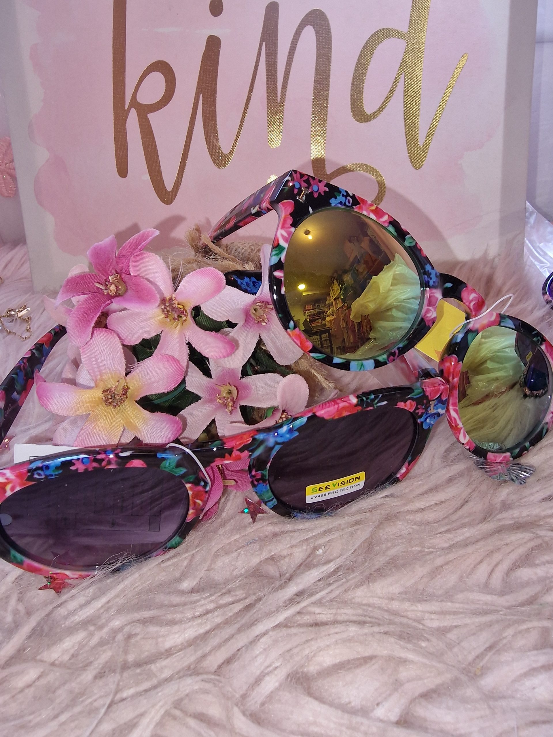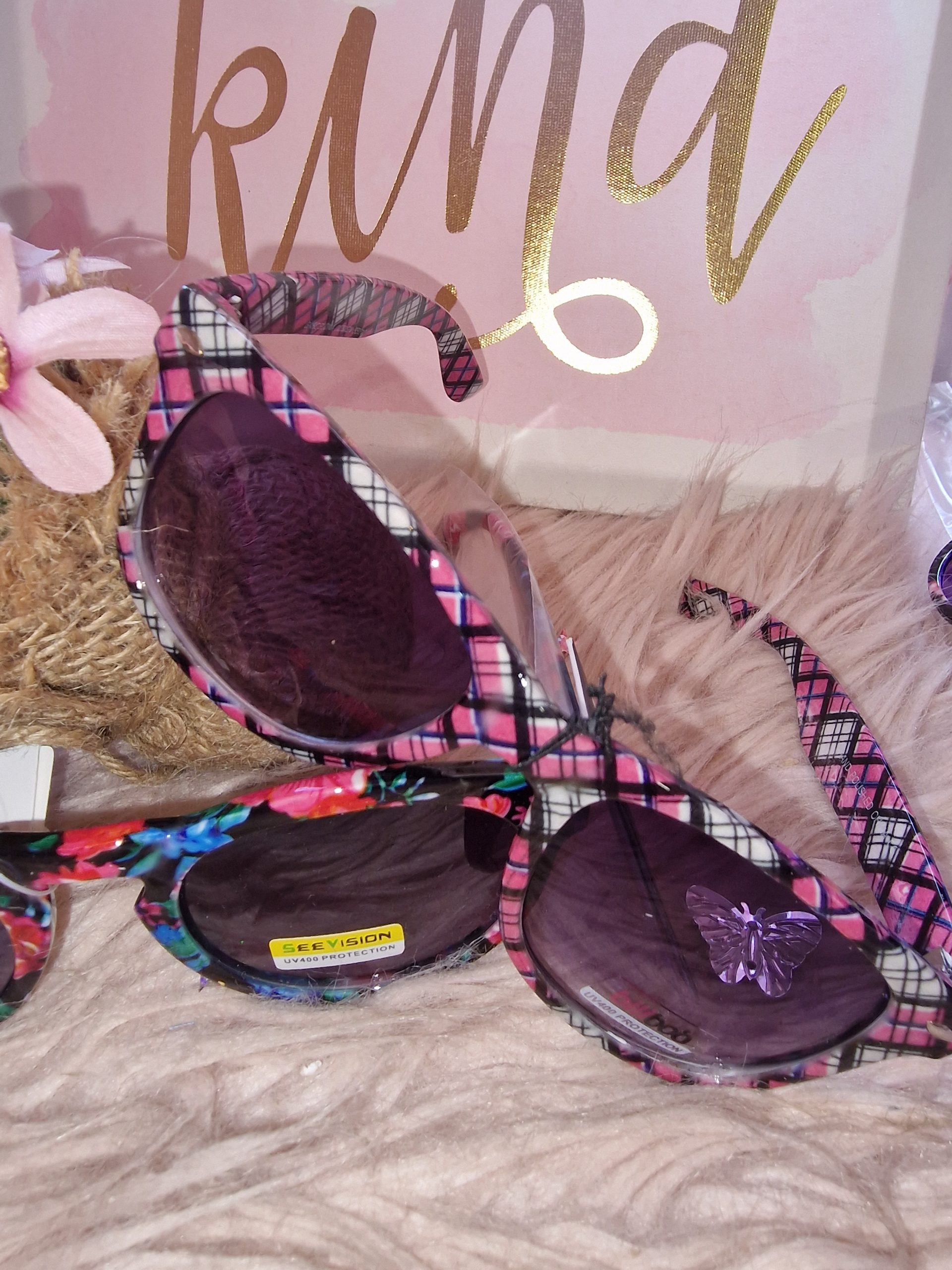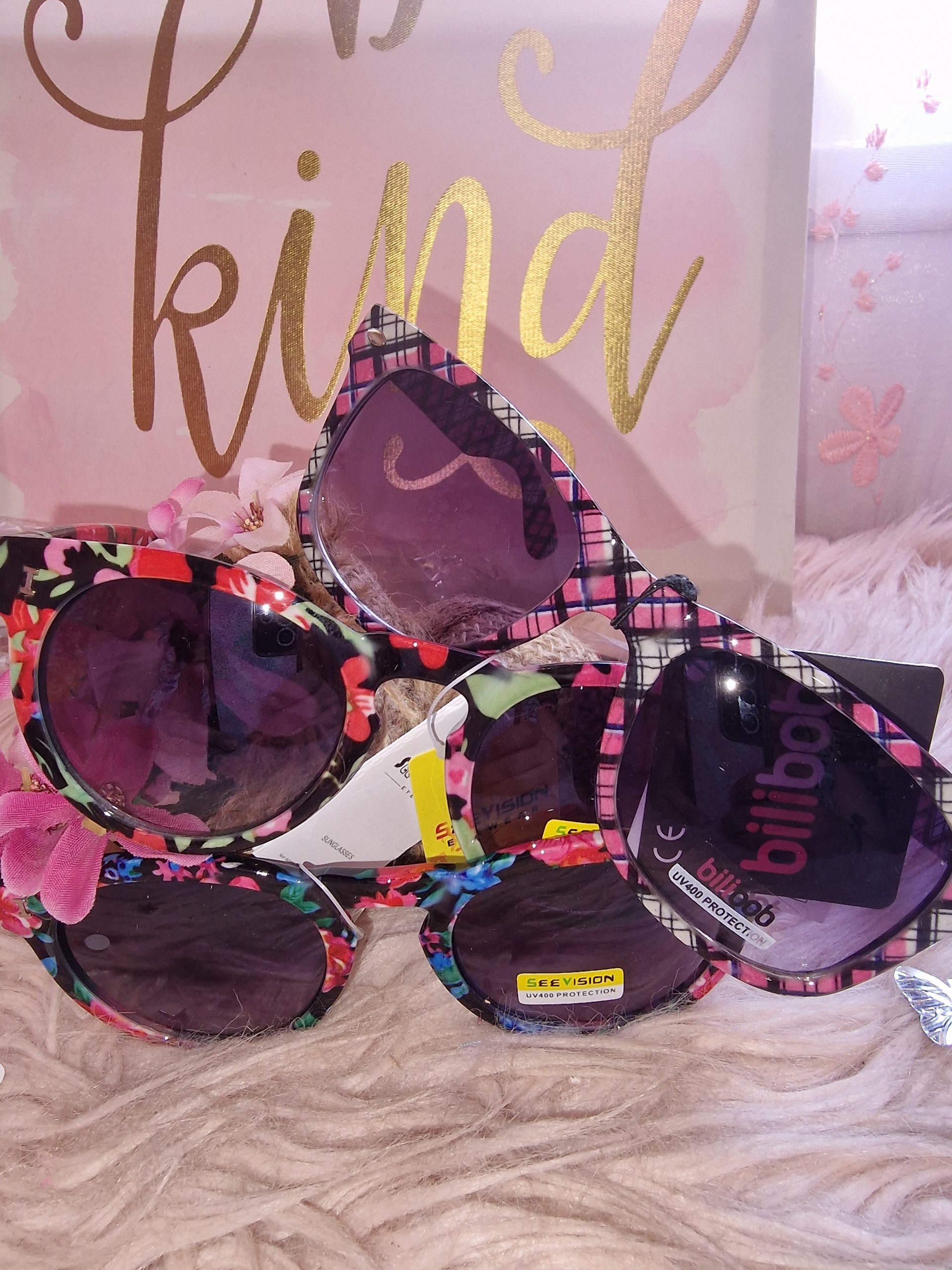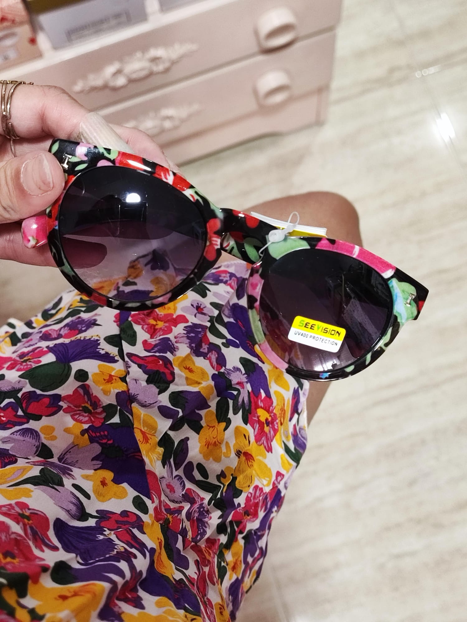 Gafas de sol de pasta, con distintos estampados en en flores o cuadros. Elige la que más te guste.