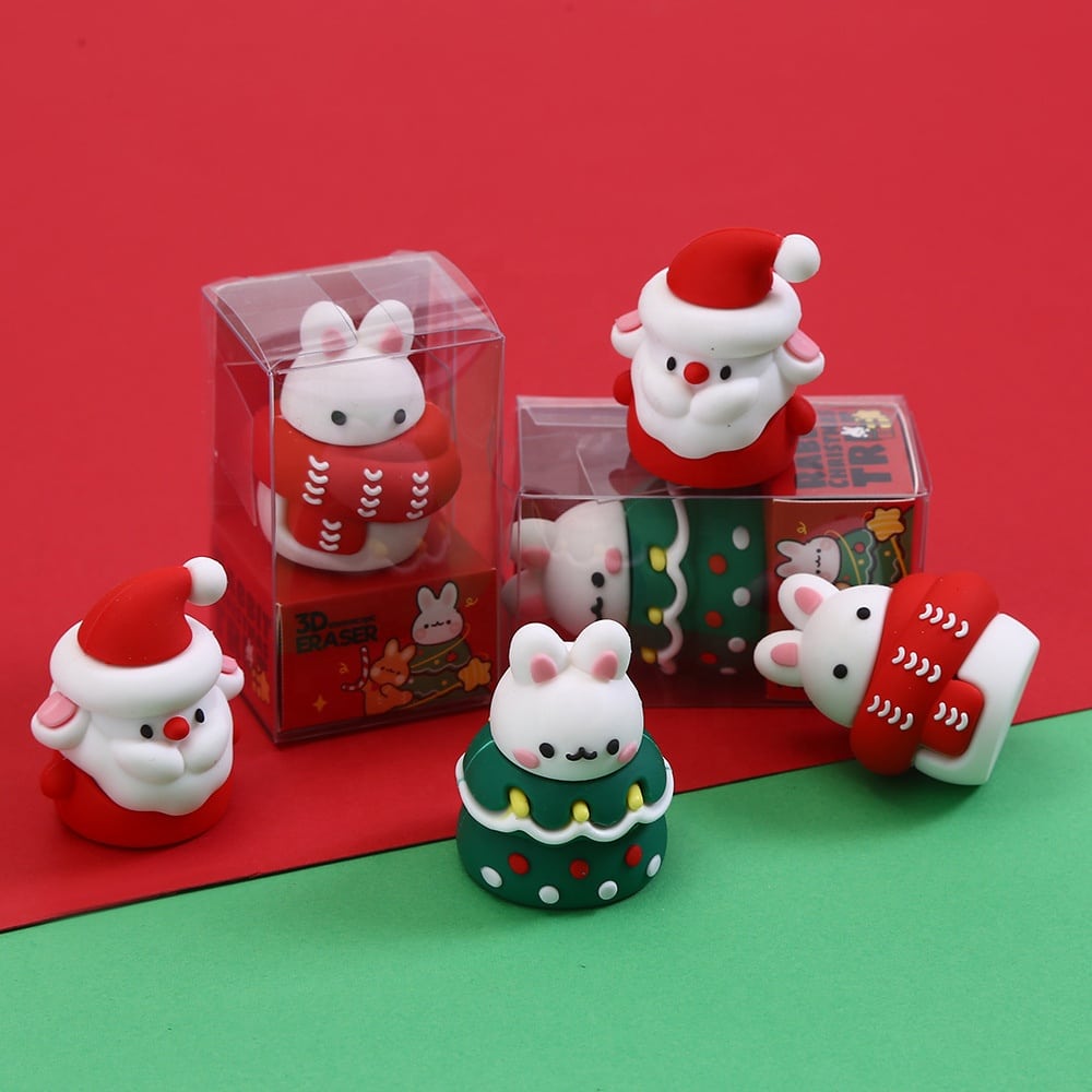 Haz que la Navidad llegue también a tu estuche con estas adorables gomas de borrar 3D con forma de personajes navideños. ¡Son tan bonitas que no querrás usarlas! Perfectas para regalar, coleccionar o dar un toque festivo a tus estudios.