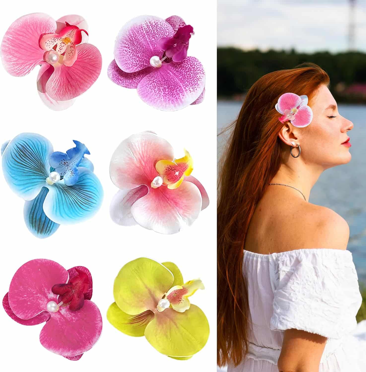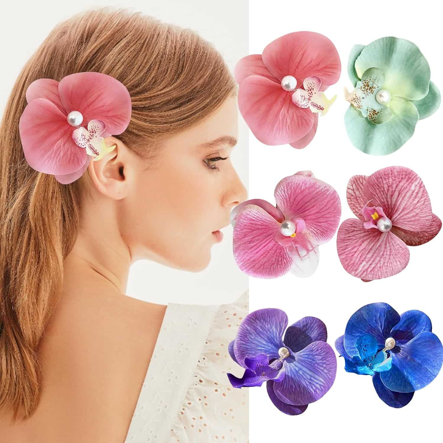Añade un toque de delicadeza y estilo tropical a tu look con estas hermosas horquillas en forma de flor de orquídea. Con un diseño realista y elegante, cada horquilla está adornada con una perla en el centro que le da un aire sofisticado y femenino, ideal para ocasiones especiales o para darle un toque romántico a tu día a día.