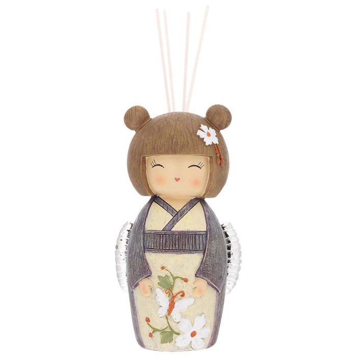 Figura Kokeshi perfumador. Fabricada en cerámica con una parte en plata bilaminada. Un elemento decorativo muy funcional. Elegante y distinguido. Tamaño: 8,5cm.