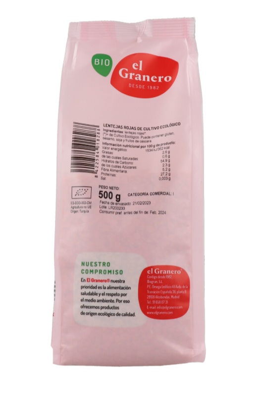 Lentejas rojas Bio de El Granero Integral se caracterizan porque no tienen la piel u hollejo que las protege, lo que las convierte en un alimento ideal para personas que tienen problemas digestivos con las legumbres.