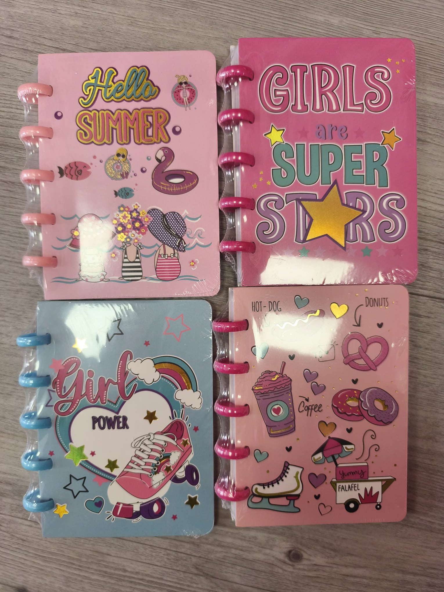 Lleva siempre contigo éstas súper libretitas con estampado de motivos veraniegos y mucha purpurina. Lo curioso de éstas libretas, es que podrás separar las hojas de las anillas sin necesidad de romperlas. Y después, podrás volver a colocarlas sin dañar las hojas.