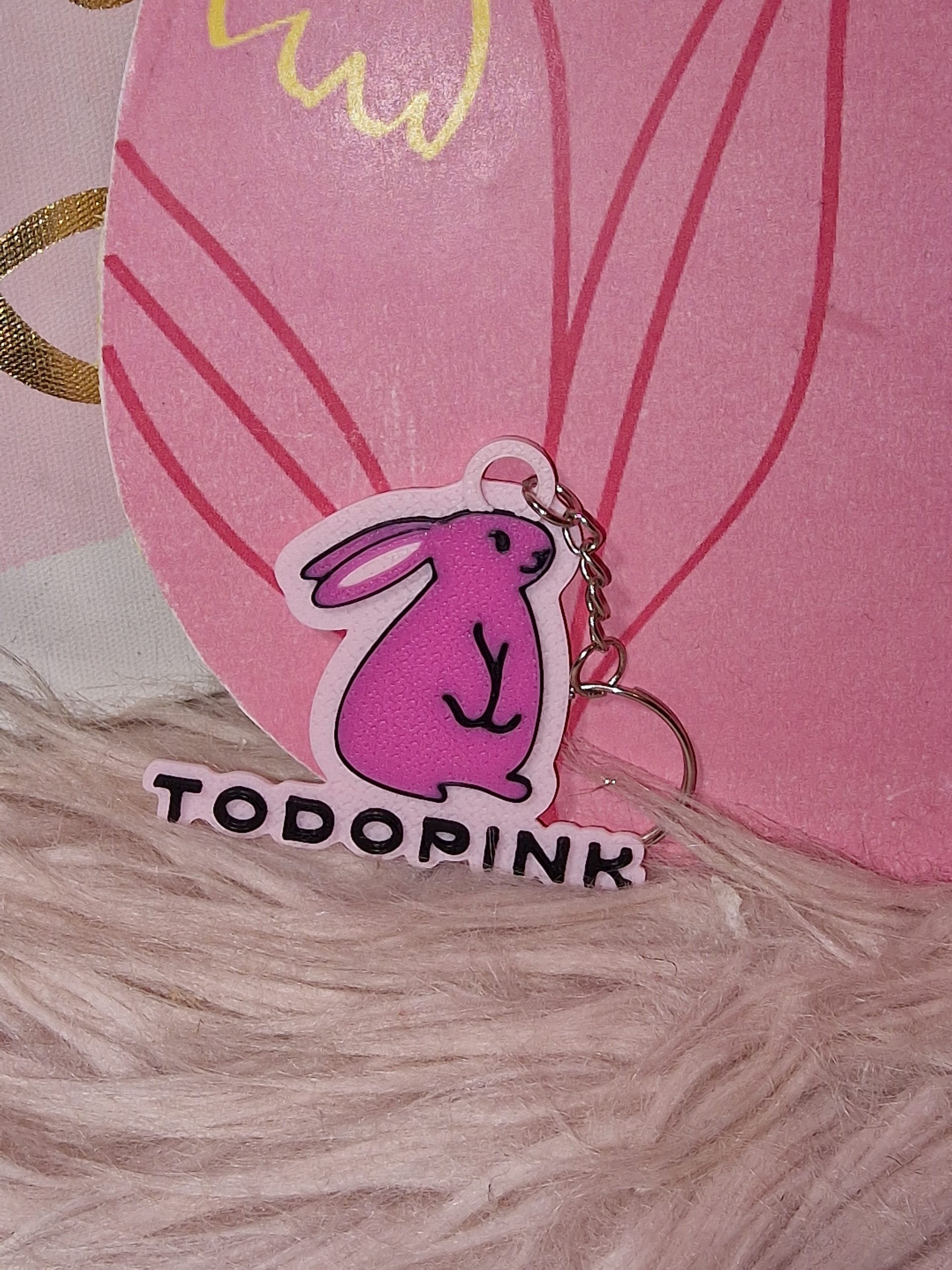 Sé una autentica chica Todopink con el llavero personalizado de nuestro logo y el pequeño Pinky. Por supuesto en color fucsia y con el fondo en color rosa clarito.