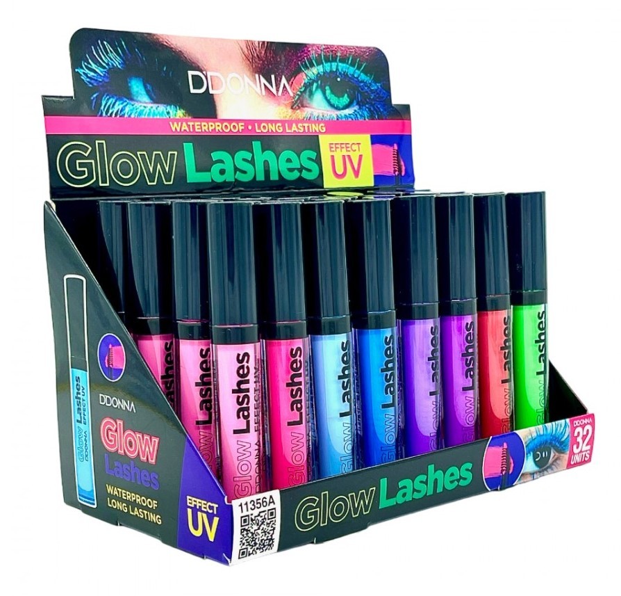 Máscara de pestañas Glow Neón con la diversión añadida de la magia fluorescente. Los 8 colores superintensos brillan con luz de neón durante el día y dan a tus pestañas un resplandor impresionante bajo la luz ultravioleta y la luz negra: ¡impresionante!
