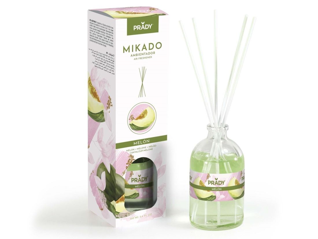 Ambientador decorativo MIKADO MELÓN, fabricado en España con alcohol y esencias naturales.