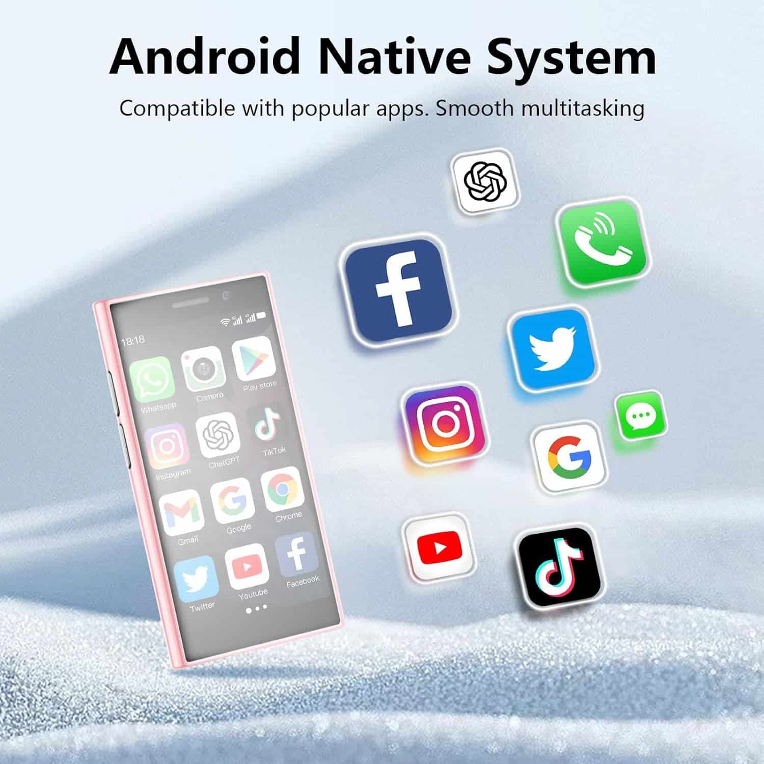 Con unas dimensiones totales de 92*49*13 mm y un peso de sólo 85 g, este smartphone ultramini es muy portátil y cabe fácilmente en el bolsillo o la mochila