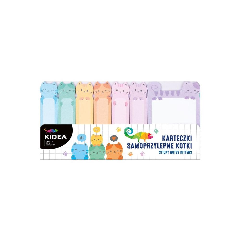 Notas adhesivas Kidea con gatitos felices. El set incluye tarjetas de colores con espacio para notas y tarjetas para marcar con gatos felices. Las notas adhesivas son compactas y caben fácilmente en un estuche. Son perfectas para tomar notas y anotar información importante, crear listas de tareas pendientes o marcar pasajes importantes de un libro o libro de texto.