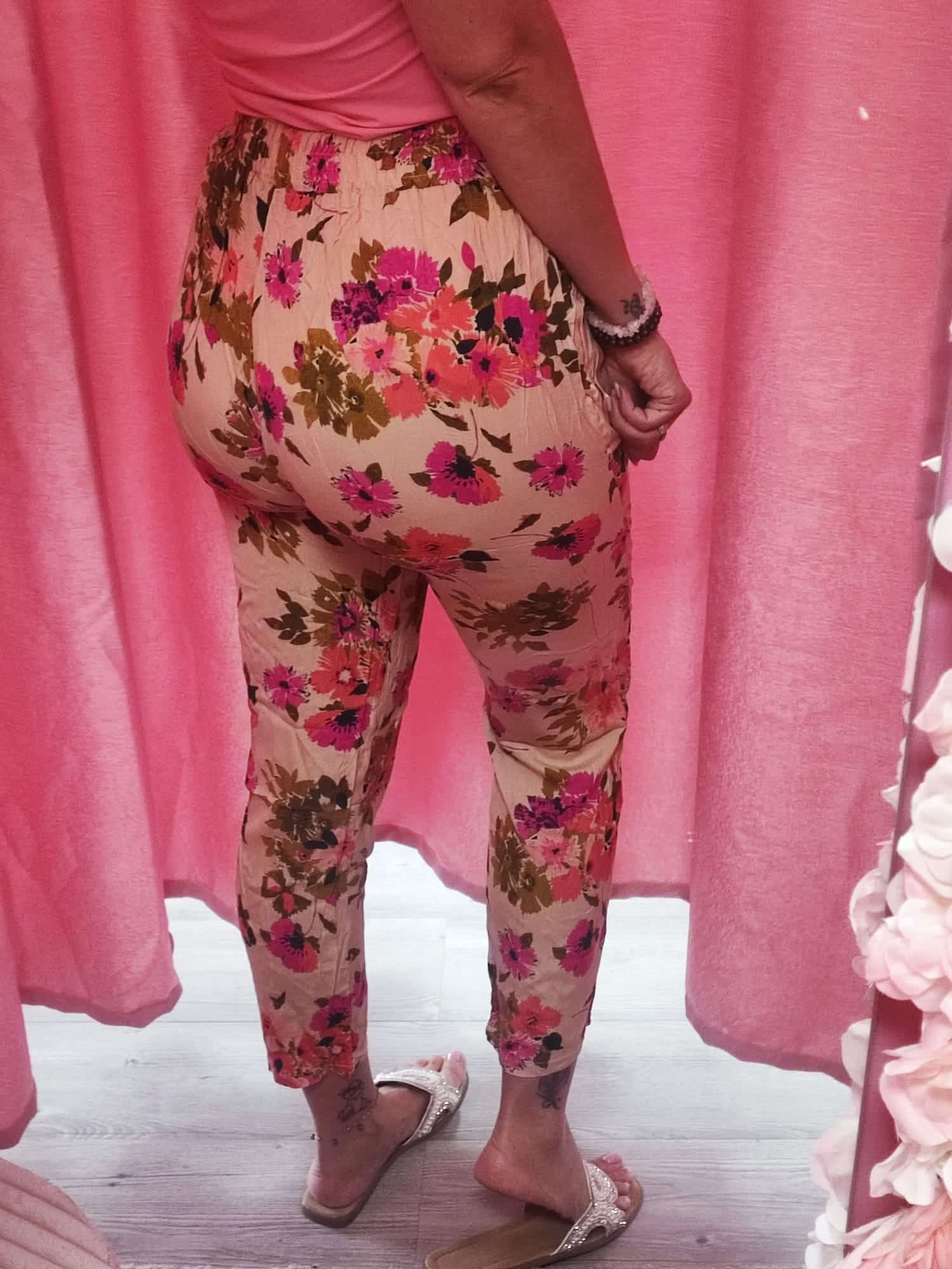 ¡Llena tu armario de color y frescura con estos pantalones florales ideales para la temporada! Confeccionados en una tela suave y ligera, estos pantalones combinan comodidad y estilo a la perfección. Su diseño con cintura elástica y lazo ajustable garantiza un calce cómodo, mientras que el vibrante estampado floral en tonos fucsia, rosa y verde aporta un toque alegre y femenino a cualquier look.