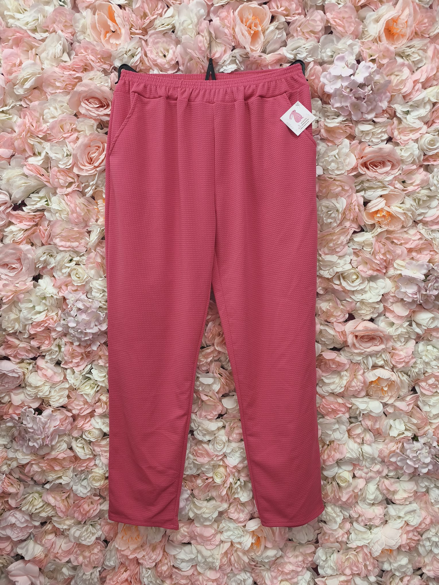 Este pantalón en un vibrante tono rosa es ideal para quienes aman verse bien sin renunciar al confort. Su textura sutil le da un toque moderno y chic, perfecto tanto para estar en casa como para salir con estilo.