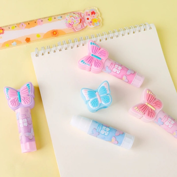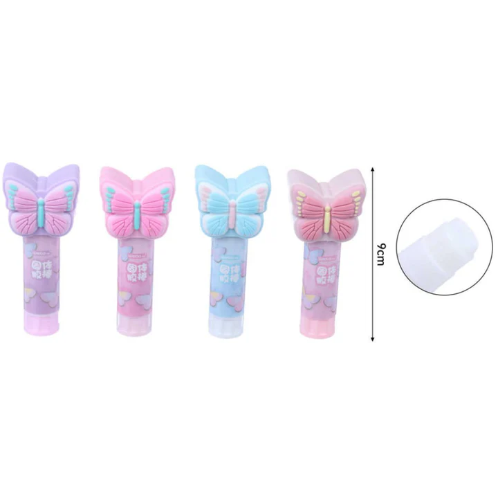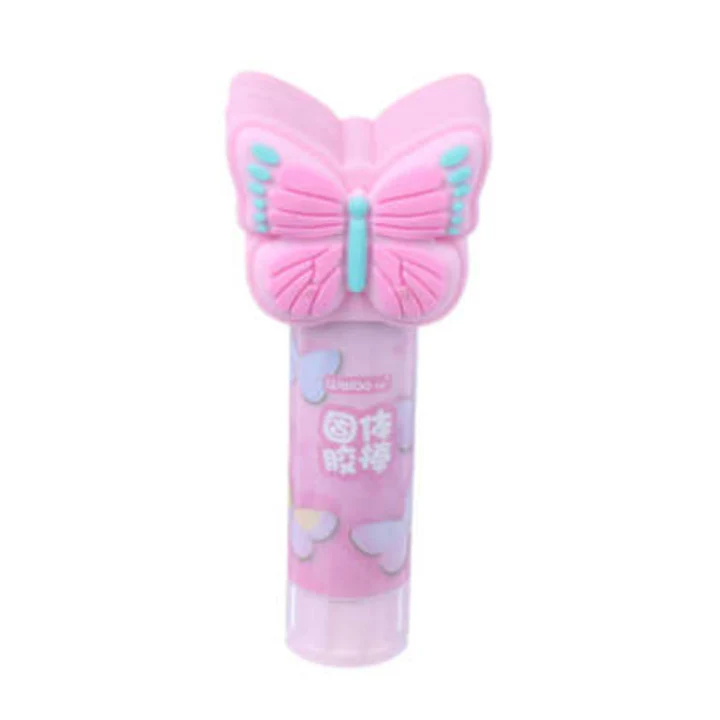 El pegamento en barra con diseño mariposa de 9cm es perfecto para manualidades y trabajos escolares. Disponibe en 4 colores diferentes (rosa, fucsia, morado y celeste) para darle un toque creativo a tus proyectos. ¡No te quedes sin él!
