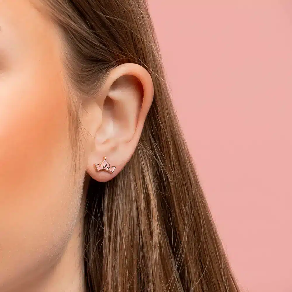 ? Un par con coronas doradas esmaltadas en rosa, símbolo de la princesa Aurora.