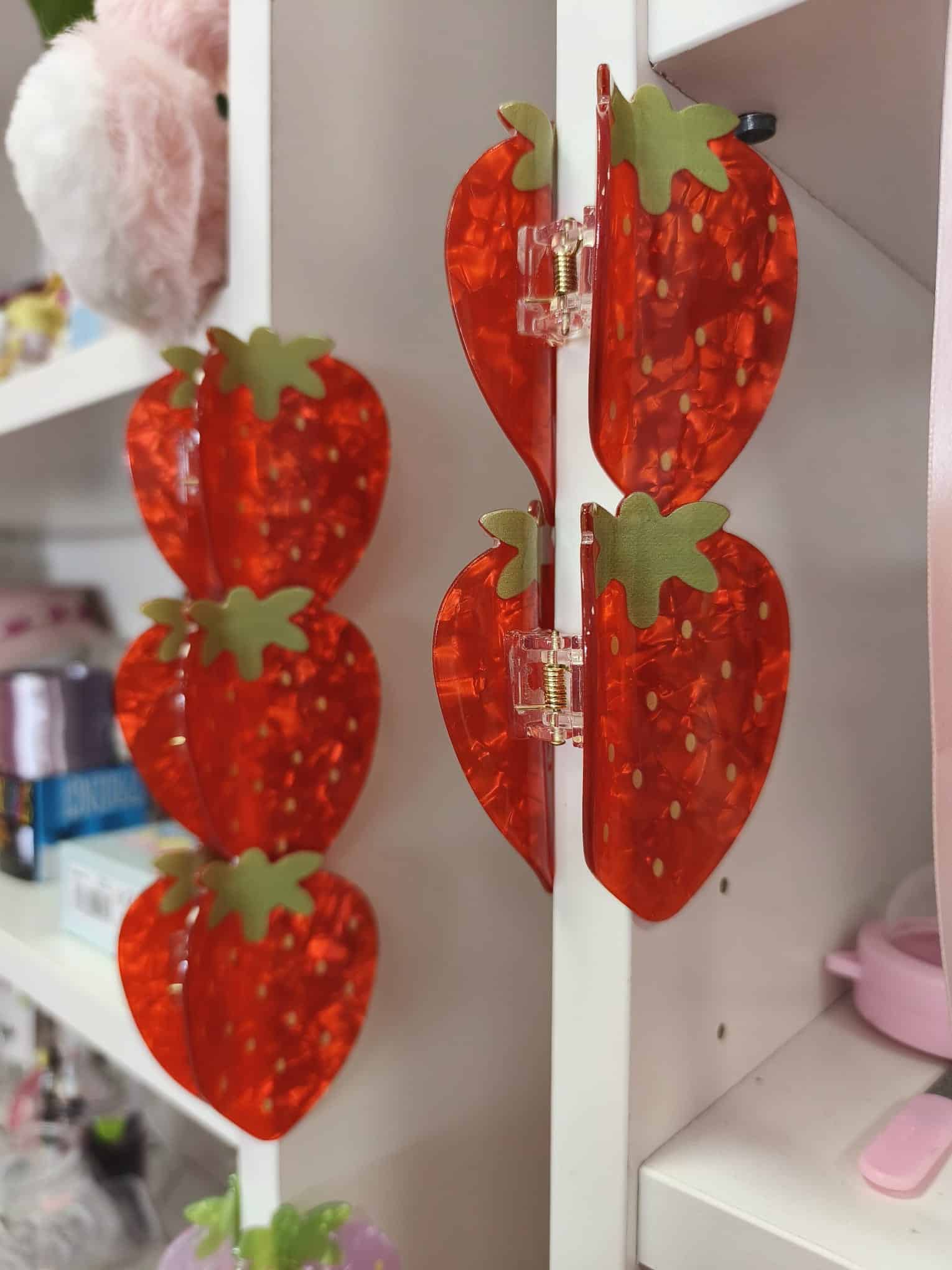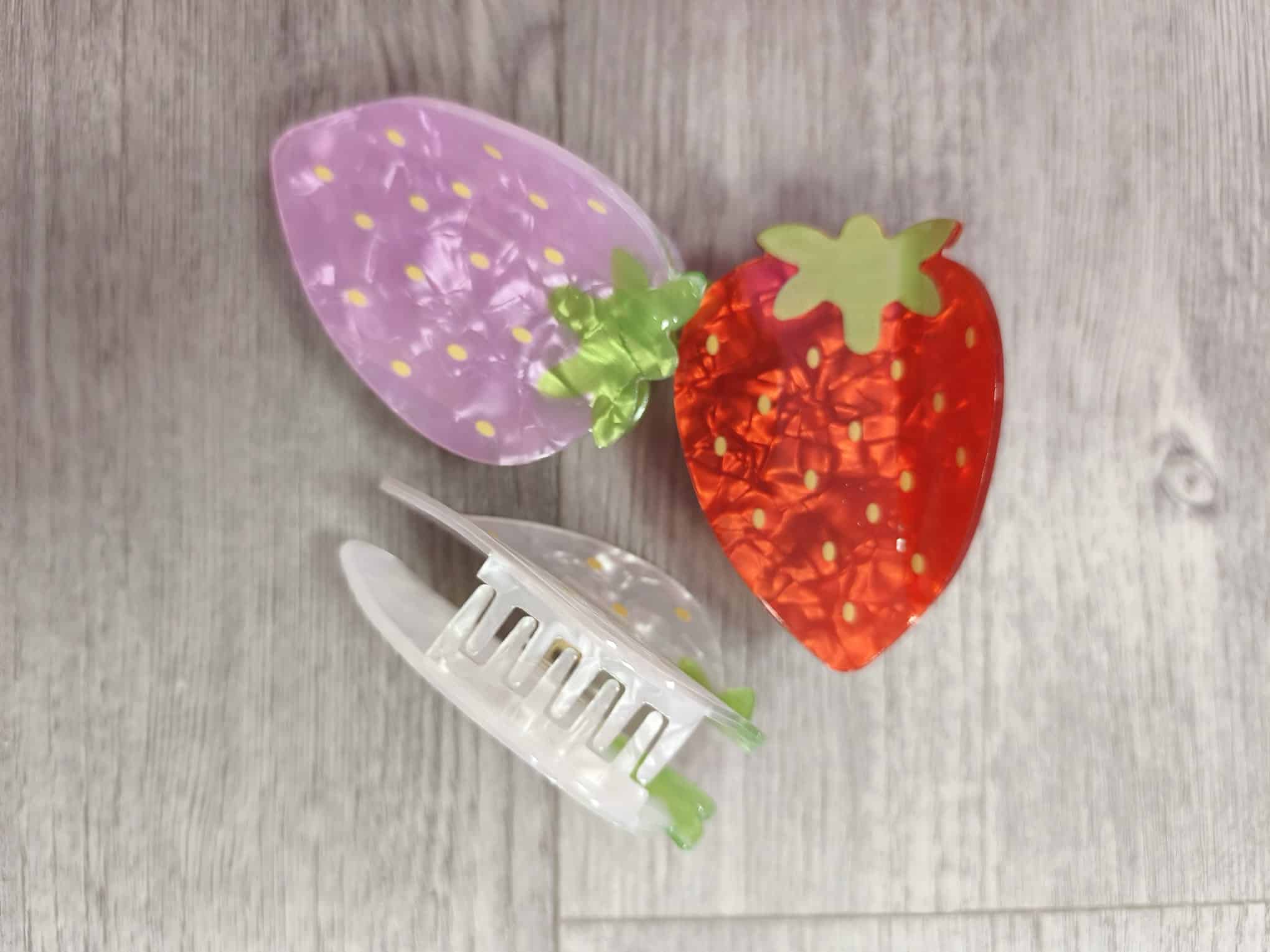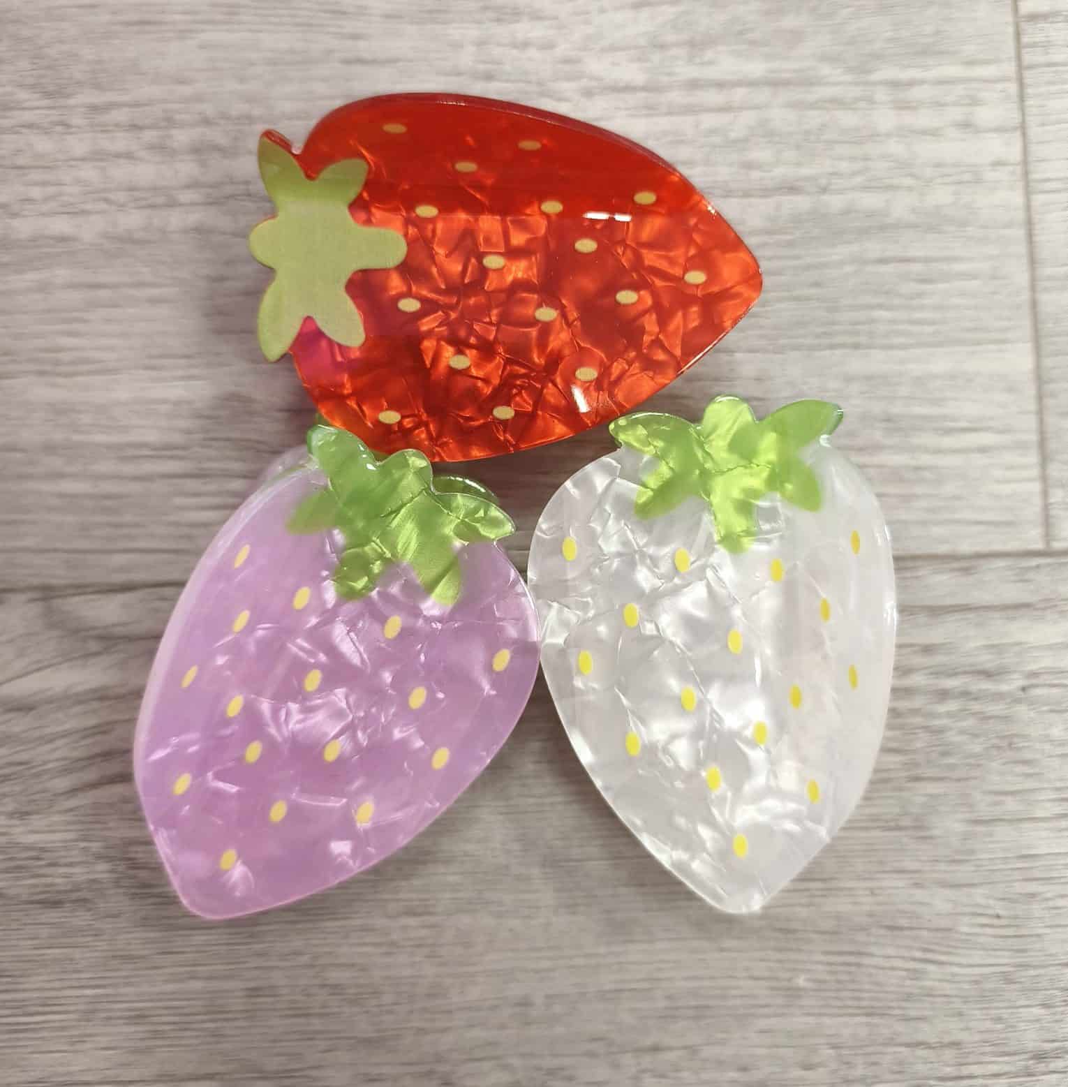 Nuestras encantadoras pinzas para el pelo con forma de fresa son el accesorio perfecto para añadir color y estilo a tu look diario. Disponibles en tres tonos irresistibles —rojo clásico, rosita claro y blanco— estas pinzas combinan a la perfección ternura y funcionalidad.