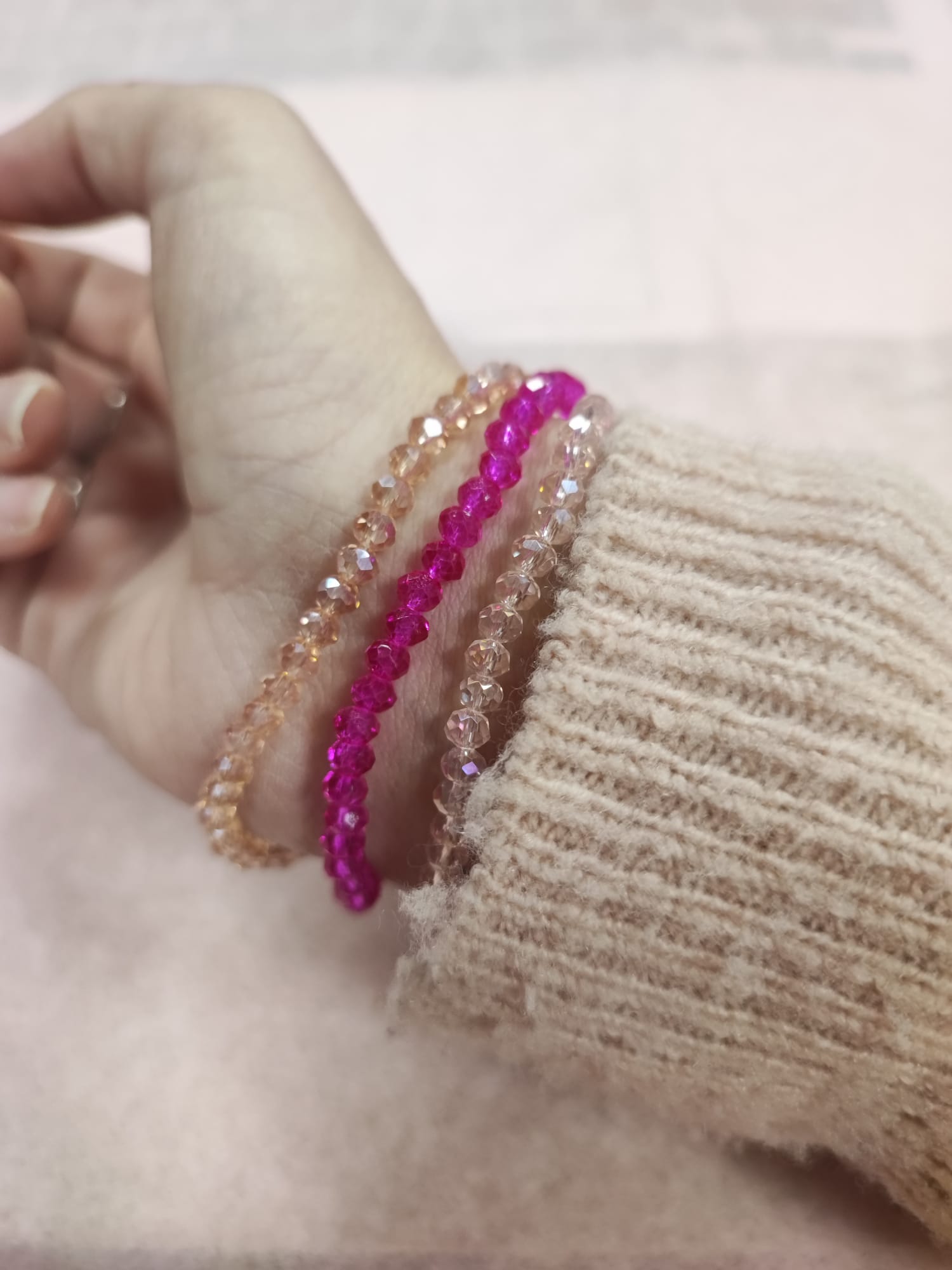 Bonitas pulseras de hilo elástico que le darán un toque alegre y alegante a tu look.