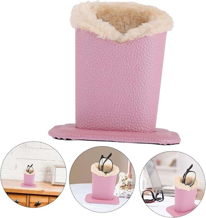 - Soporte de cuero para gafas: con base ancha para apoyarlos de pie en el escritorio en posición vertical, sin volcarse.