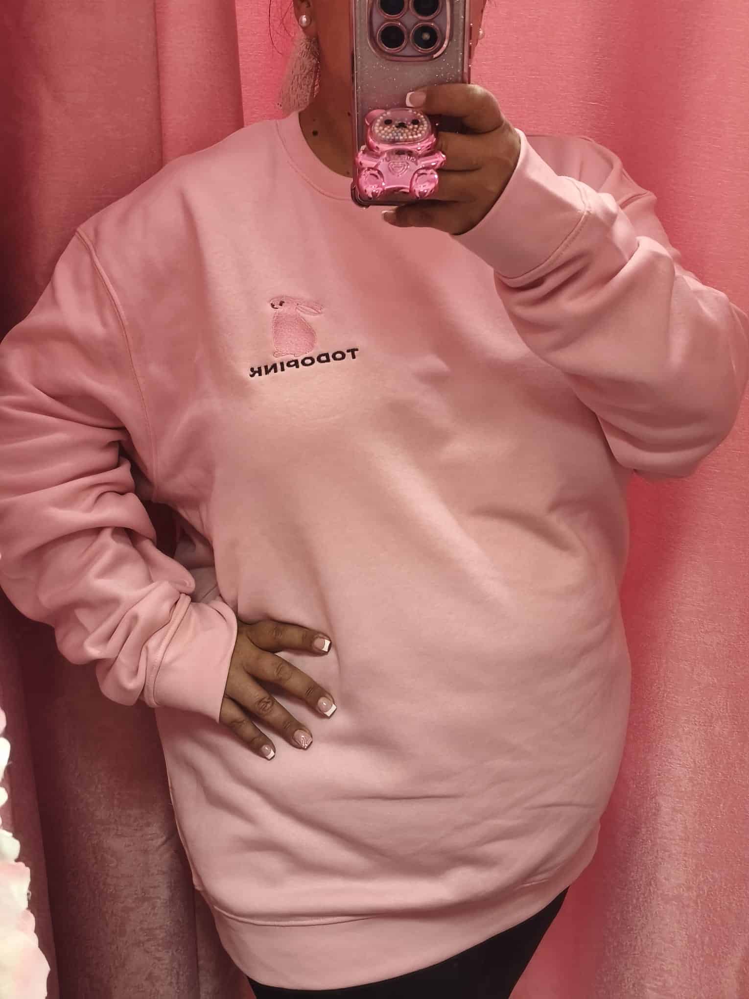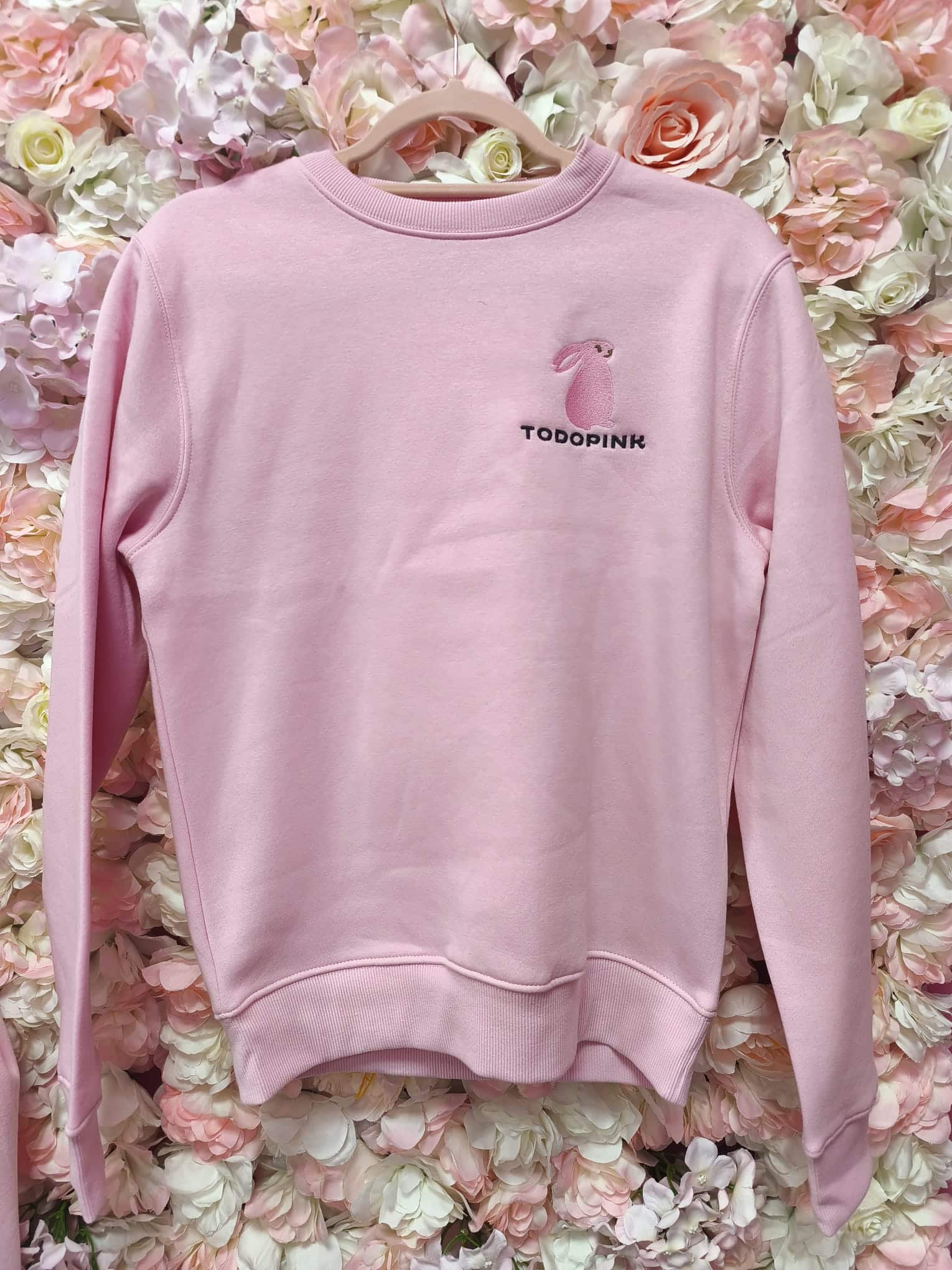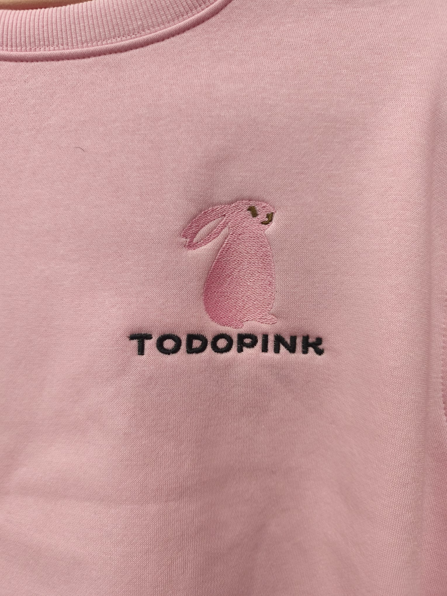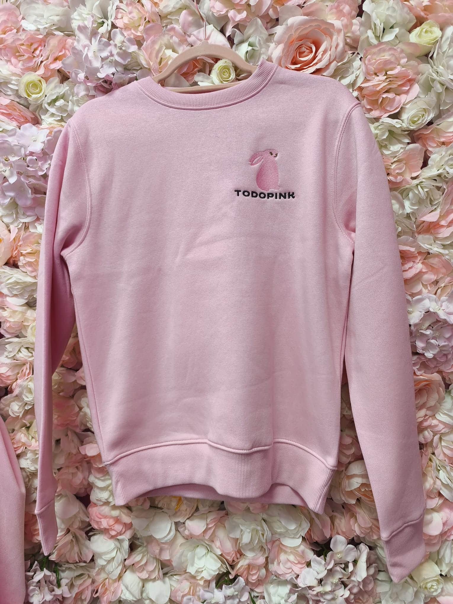 La prenda más especial de nuestra colección ?✨. Esta sudadera rosa pastel lleva en el pecho, en el lado izquierdo, el logo de conejito Todopink y el nombre bordado, detalle que la hace única y elegante.