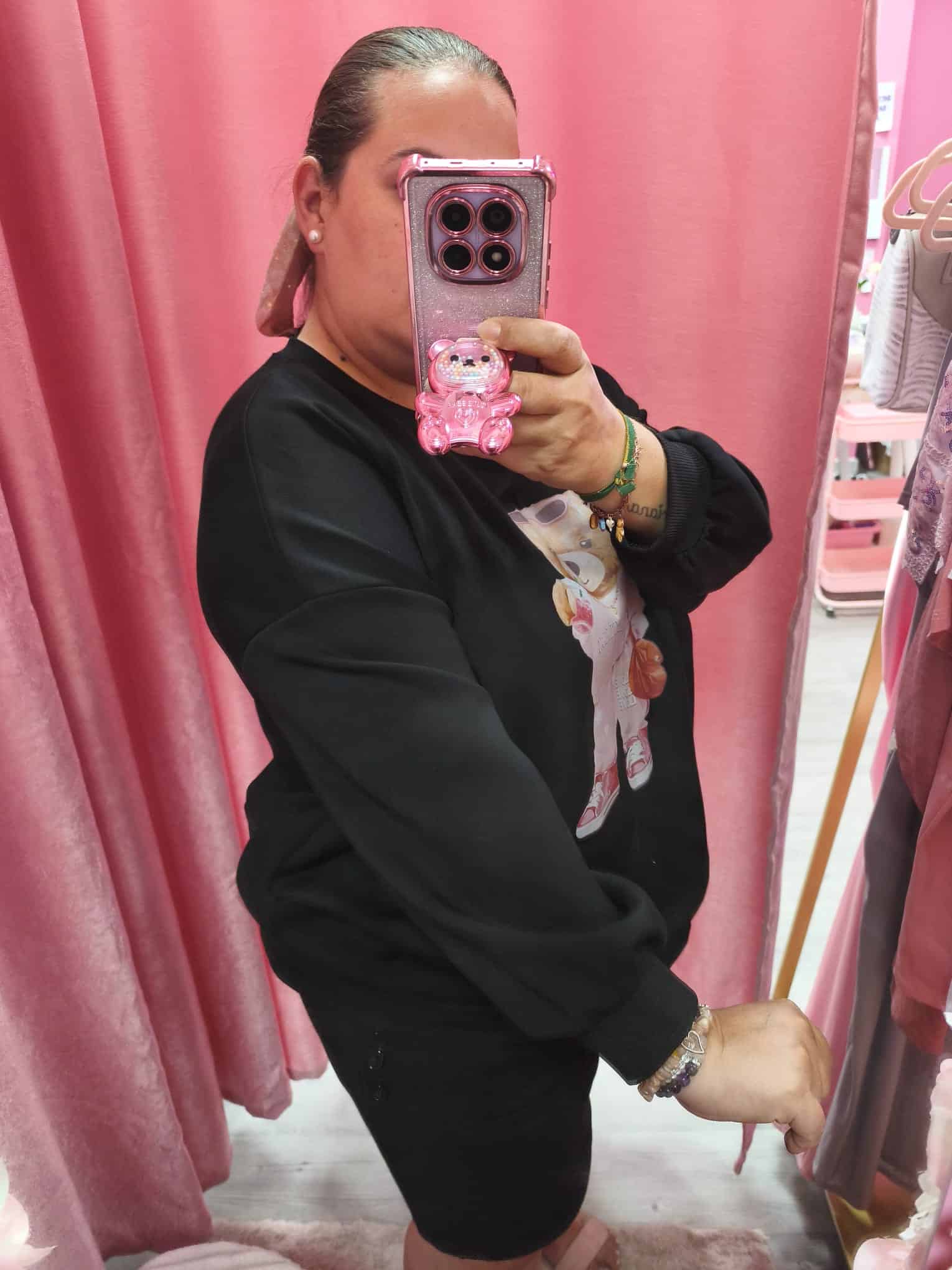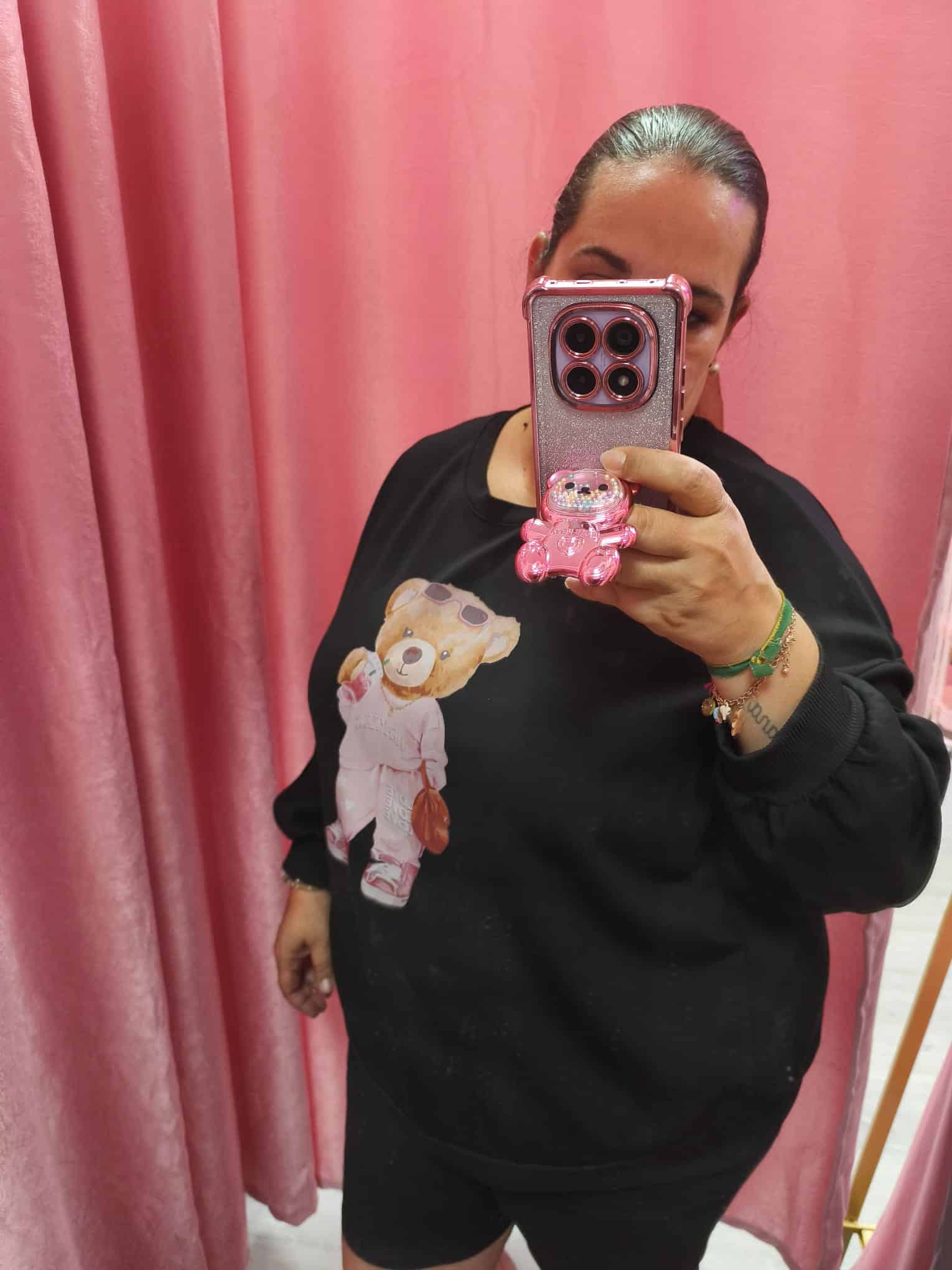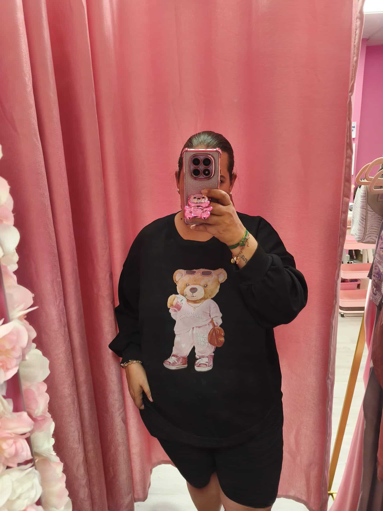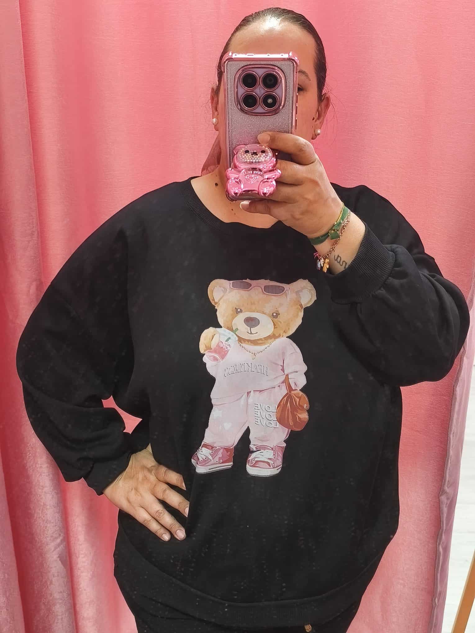 Esta sudadera curvy es perfecta para quienes aman el look relajado pero con mucho estilo. Con un diseño encantador de osito en outfit urbano, es ideal para destacar con un toque tierno y moderno.