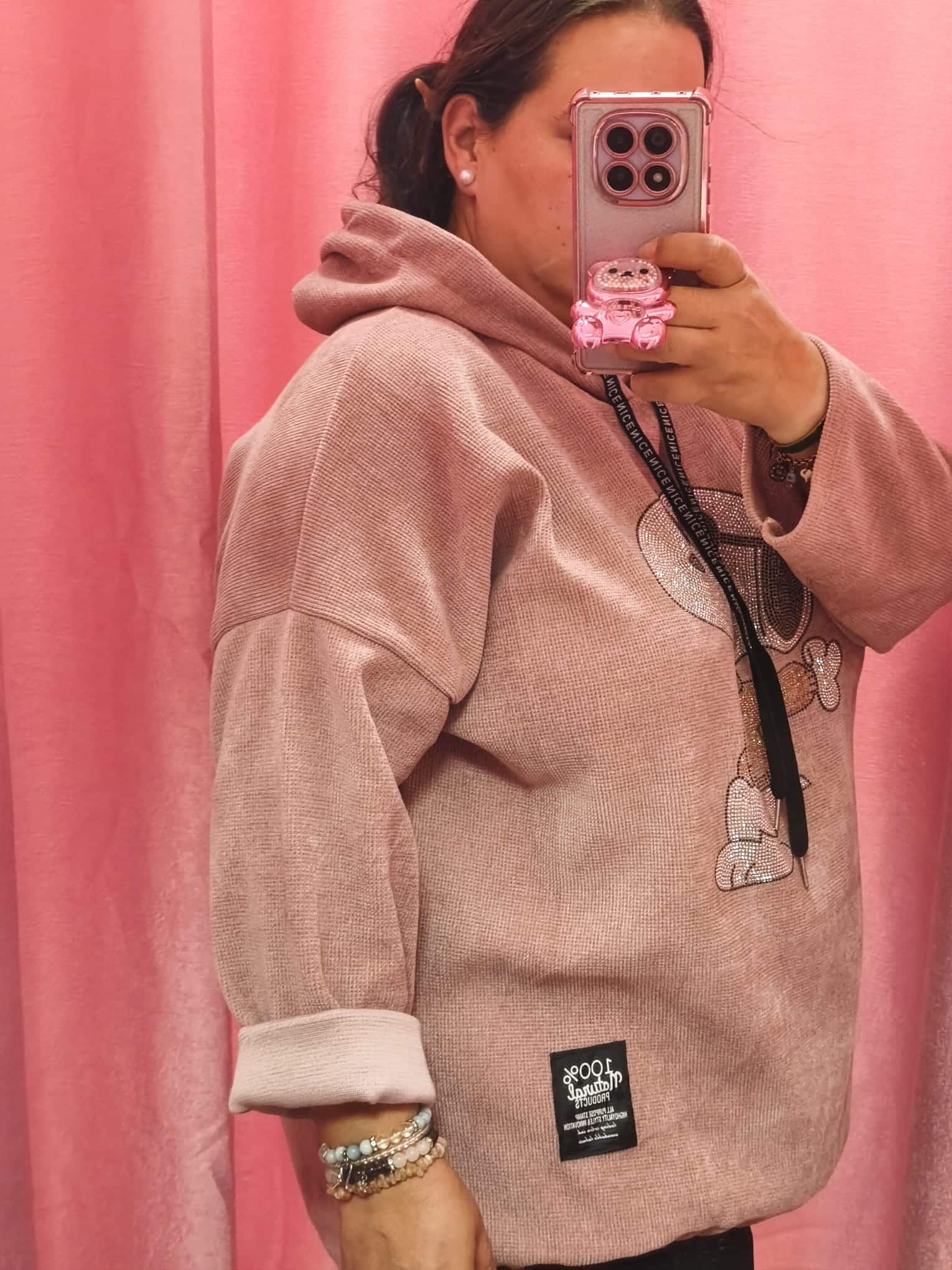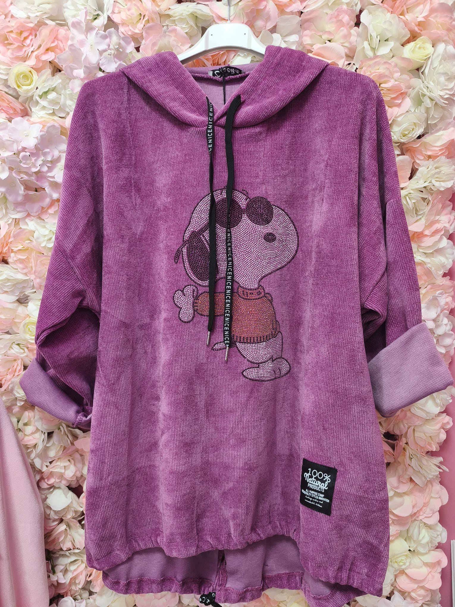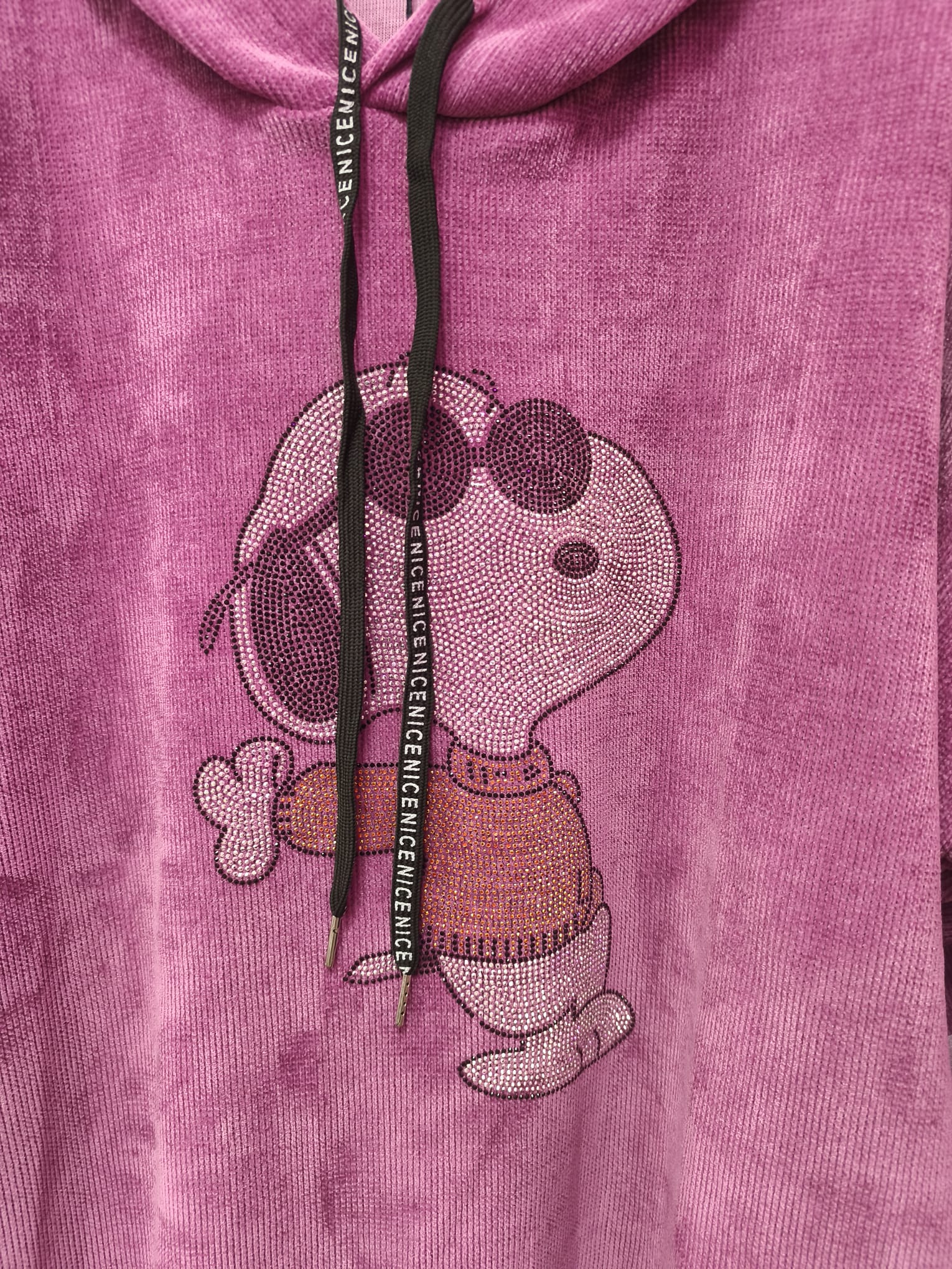 Comodidad y estilo en una sola prenda. Esta sudadera en tono marrón claro destaca por su diseño relajado y la ilustración de Snoopy decorada con piedrecitas brillantes, que le dan un toque divertido y único.