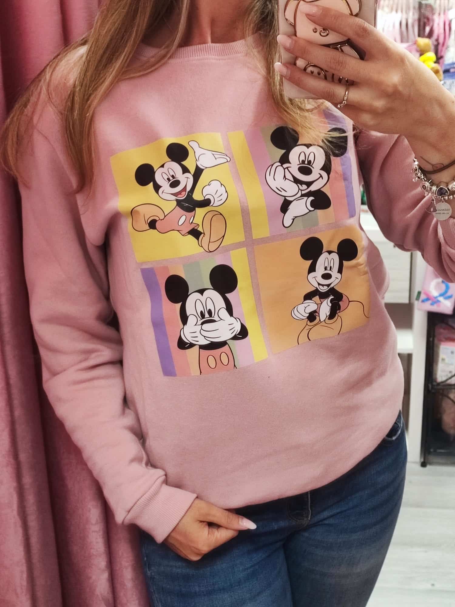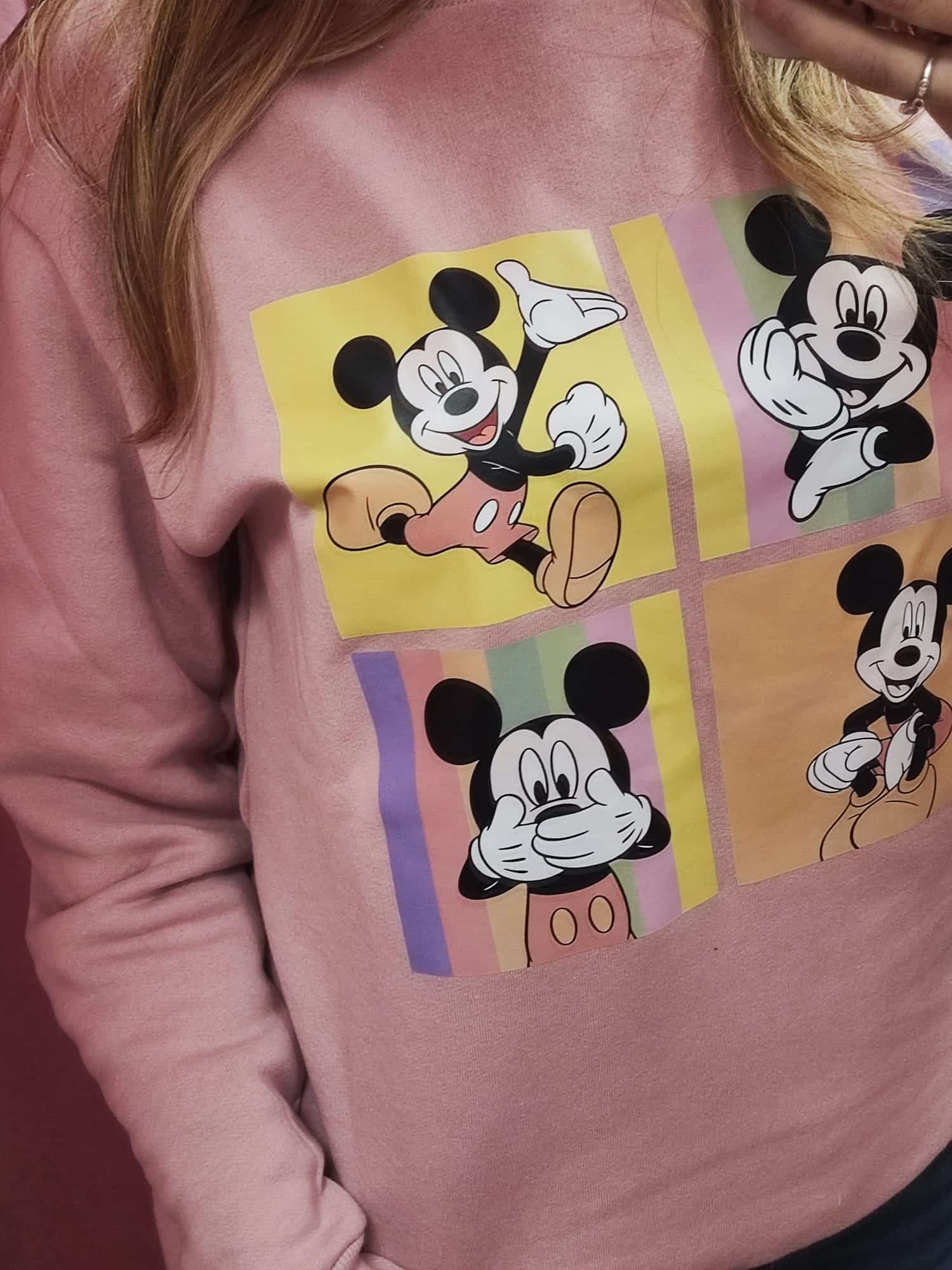 Dale un toque divertido y nostálgico a tu look con esta preciosa sudadera rosa de Mickey Mouse. Su diseño con cuatro ilustraciones llenas de color la convierte en una prenda cómoda, moderna y con mucho encanto Disney.