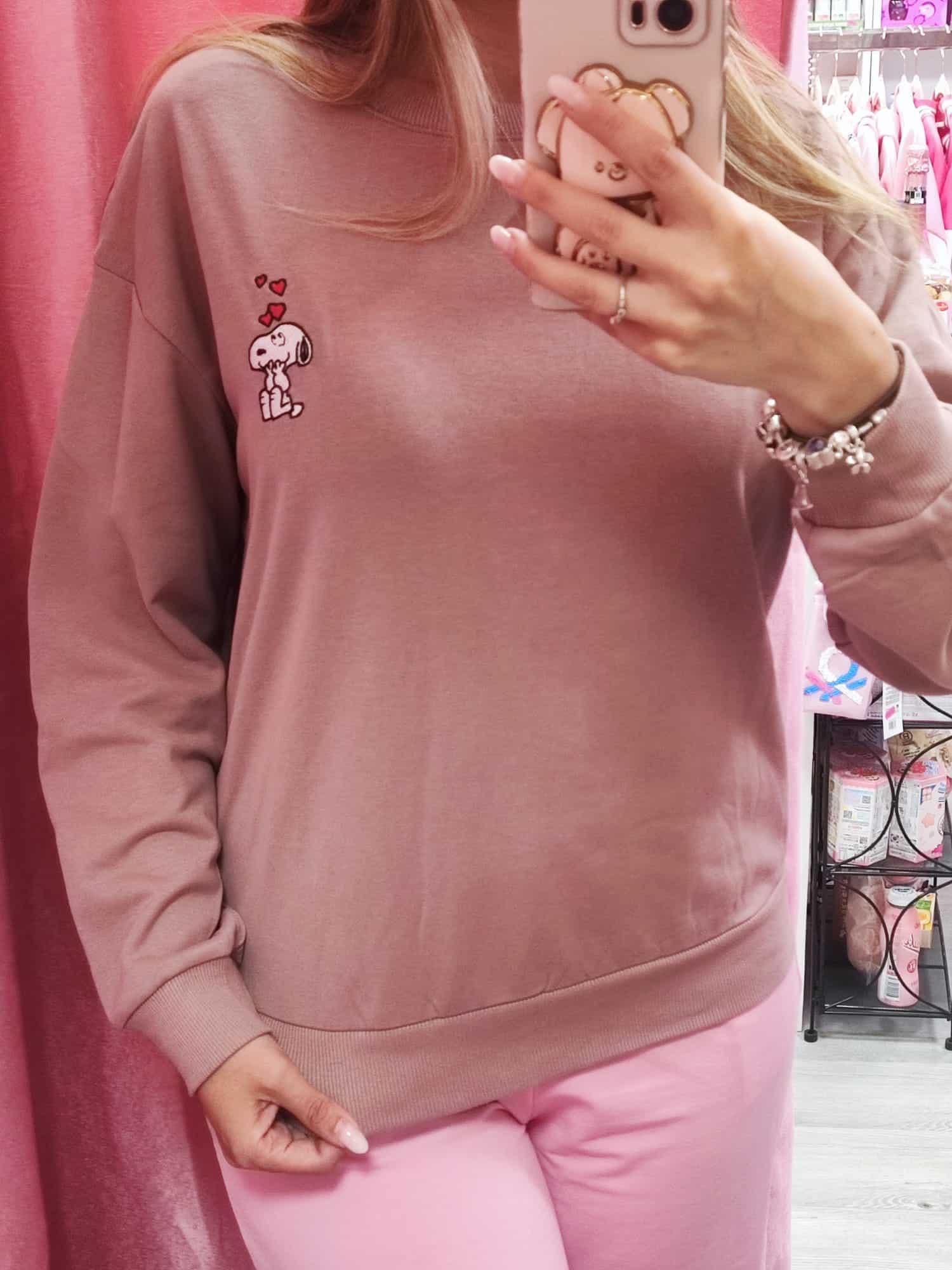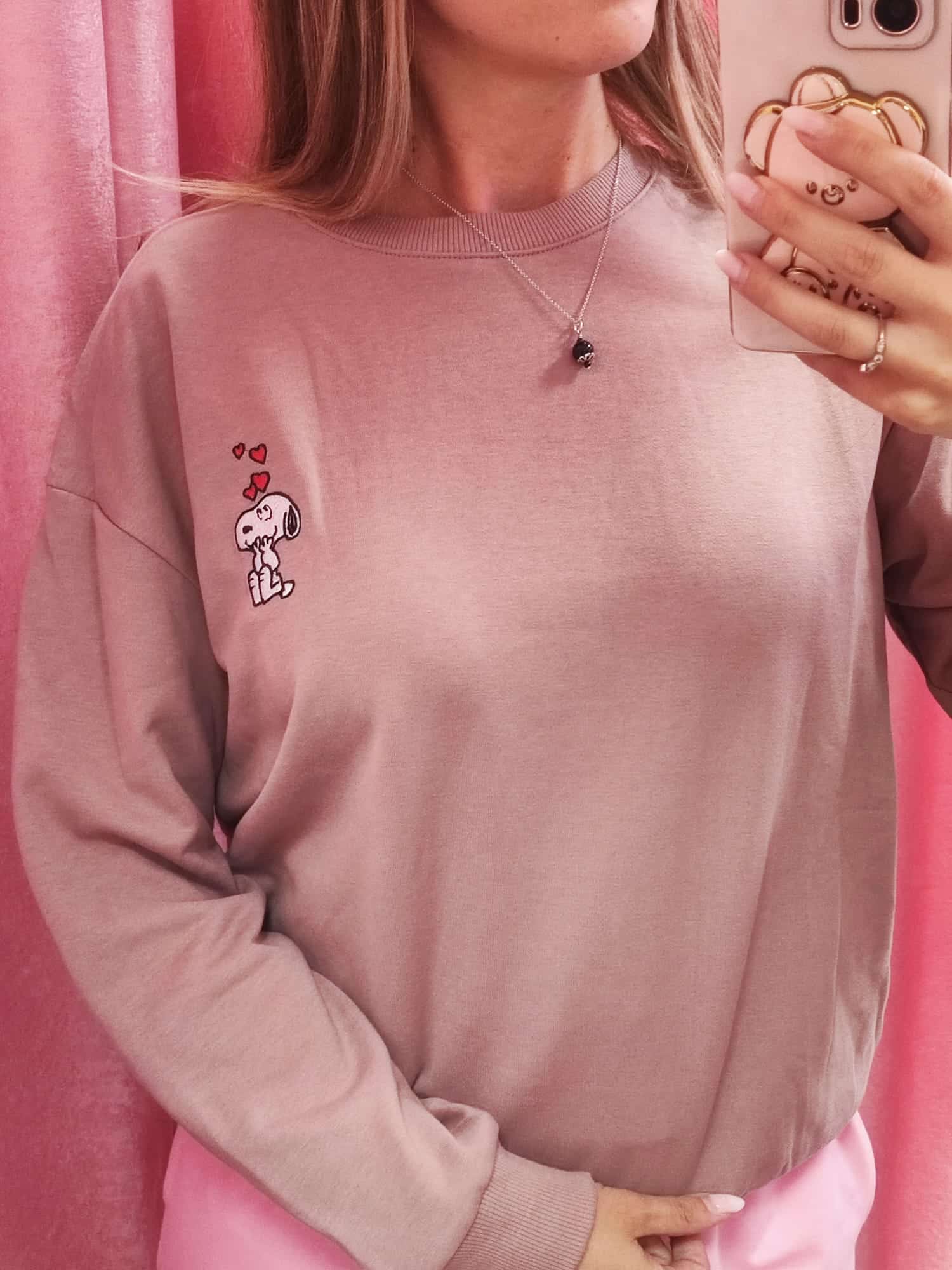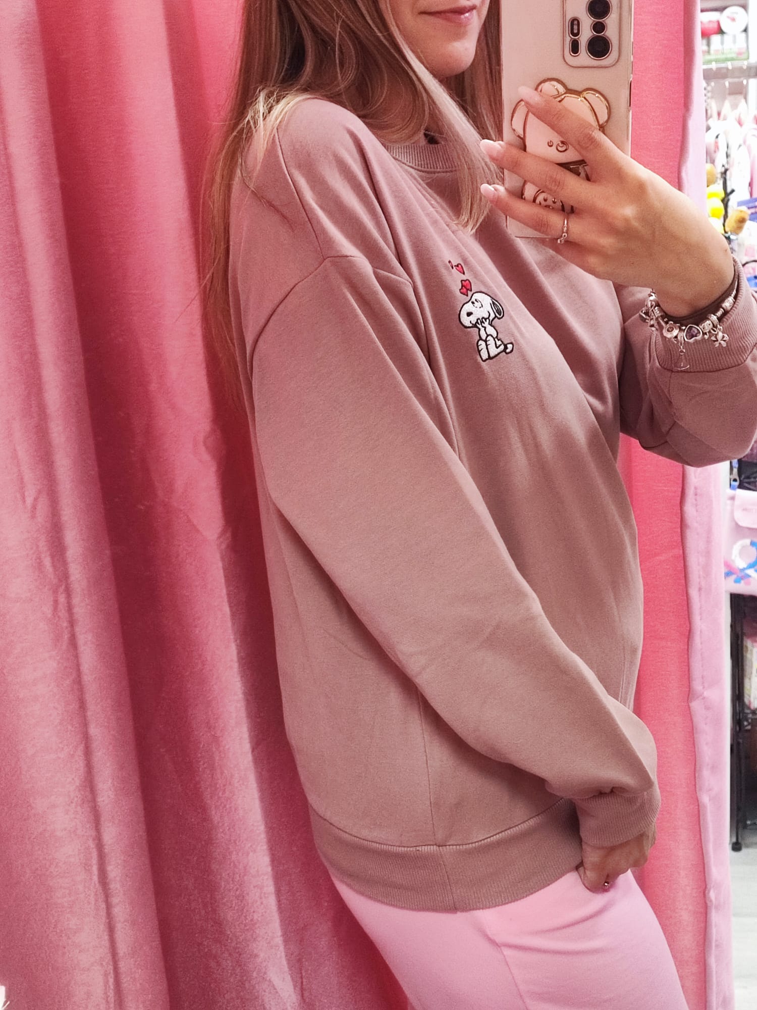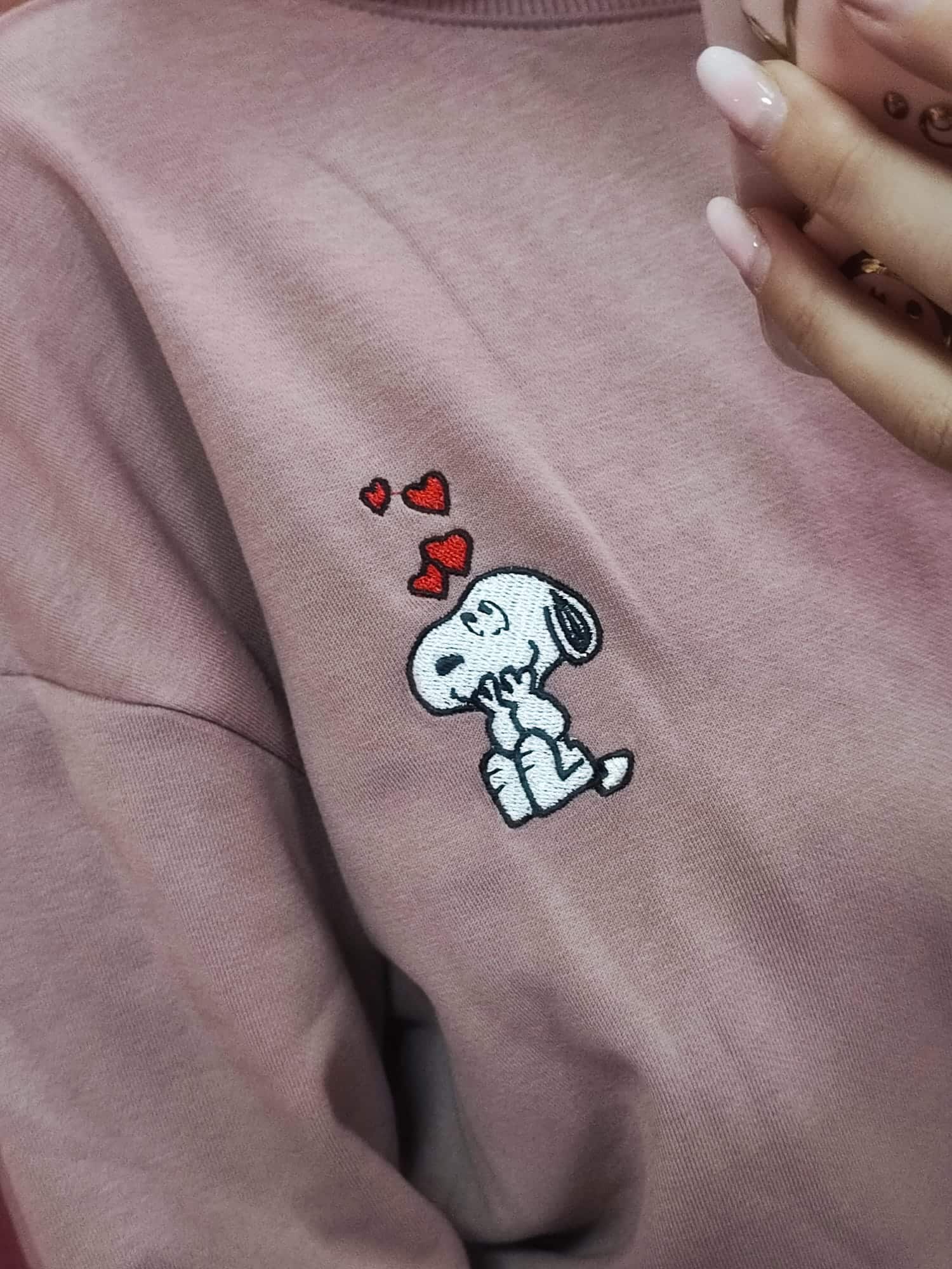 El detalle bordado del simpático Snoopy con corazones la convierte en una pieza adorable y única, ideal para tus días más relajados o para darle un toque divertido a cualquier look.