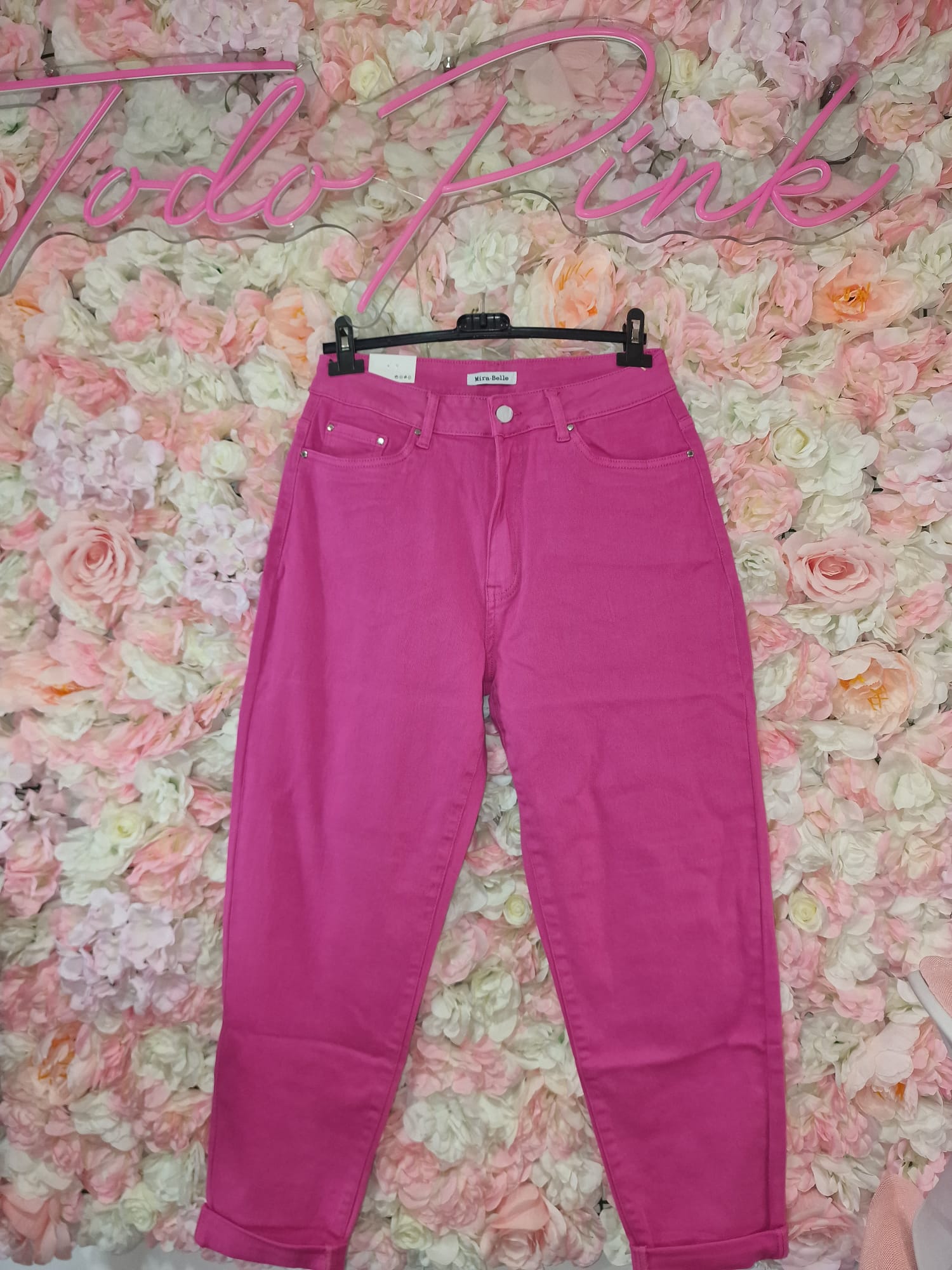 No podía faltarnos el clásico de los clásicos, un vaquero en fucsia. Este tiene un estilo súper chulo, estiliza muchísimo el cuerpo, te sorprenderá lo cómodo que es, viene perfecto de talla.