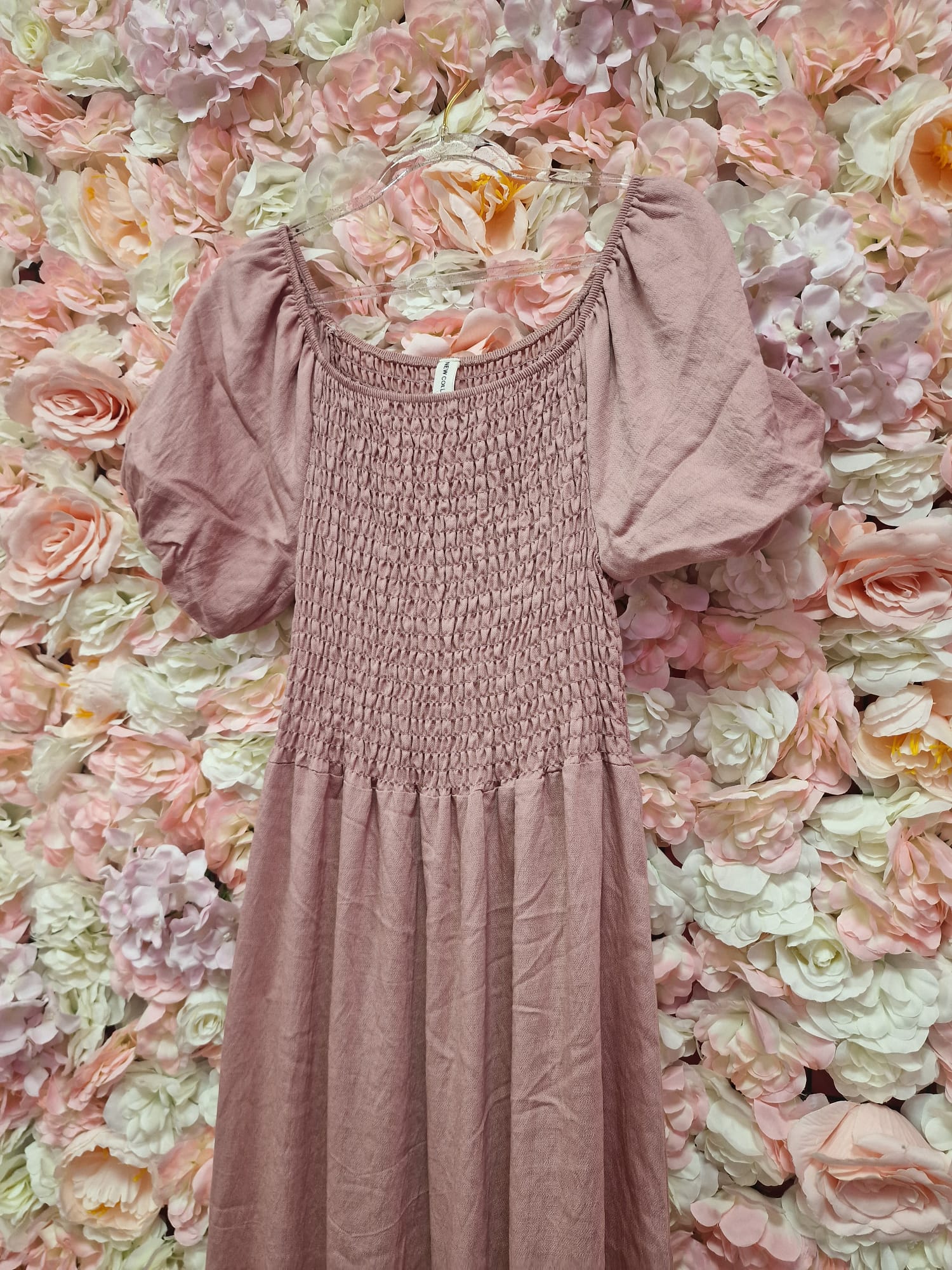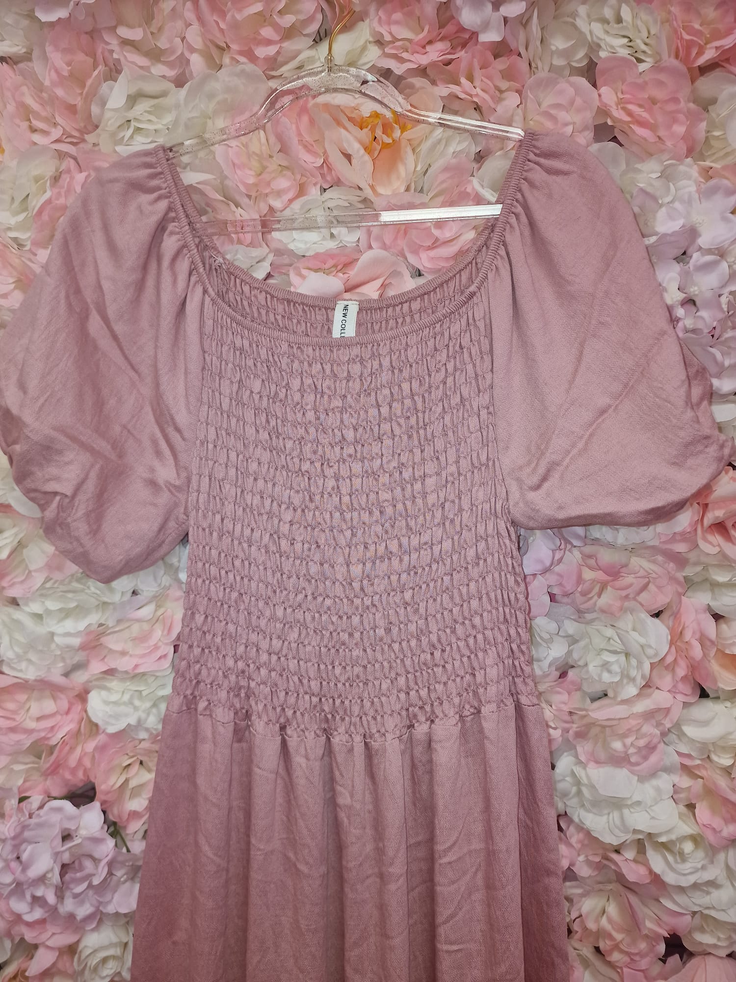 Dale un toque de dulzura y frescor a tu look con éste hermoso vestido primaveral, en tono rosa maquillaje.